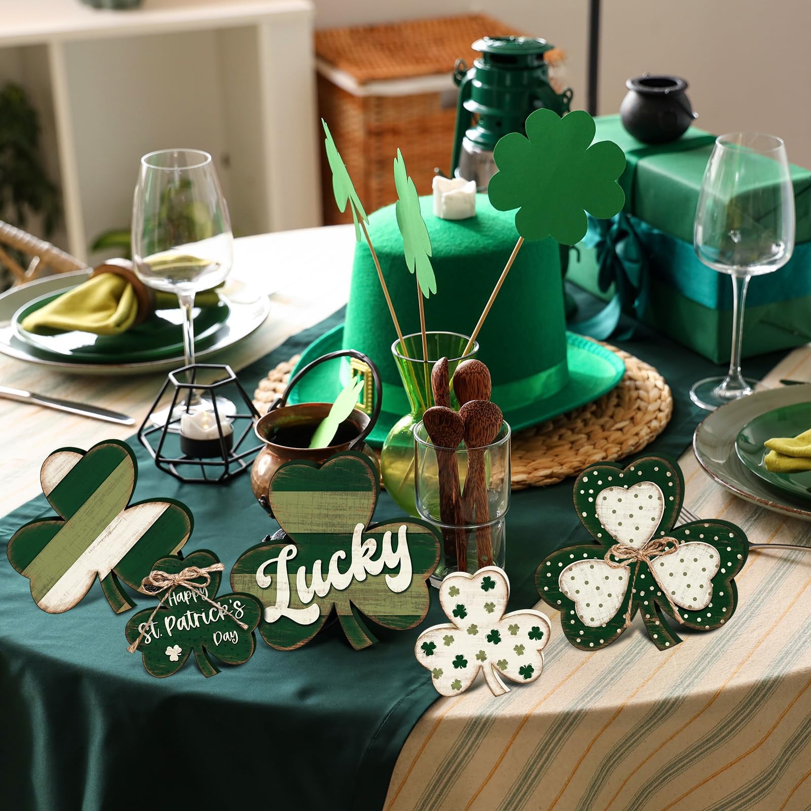 6 Pcs St. Patrick's Day Decorations Rustic Shamrock Wooden Sign Farmhouse Clover