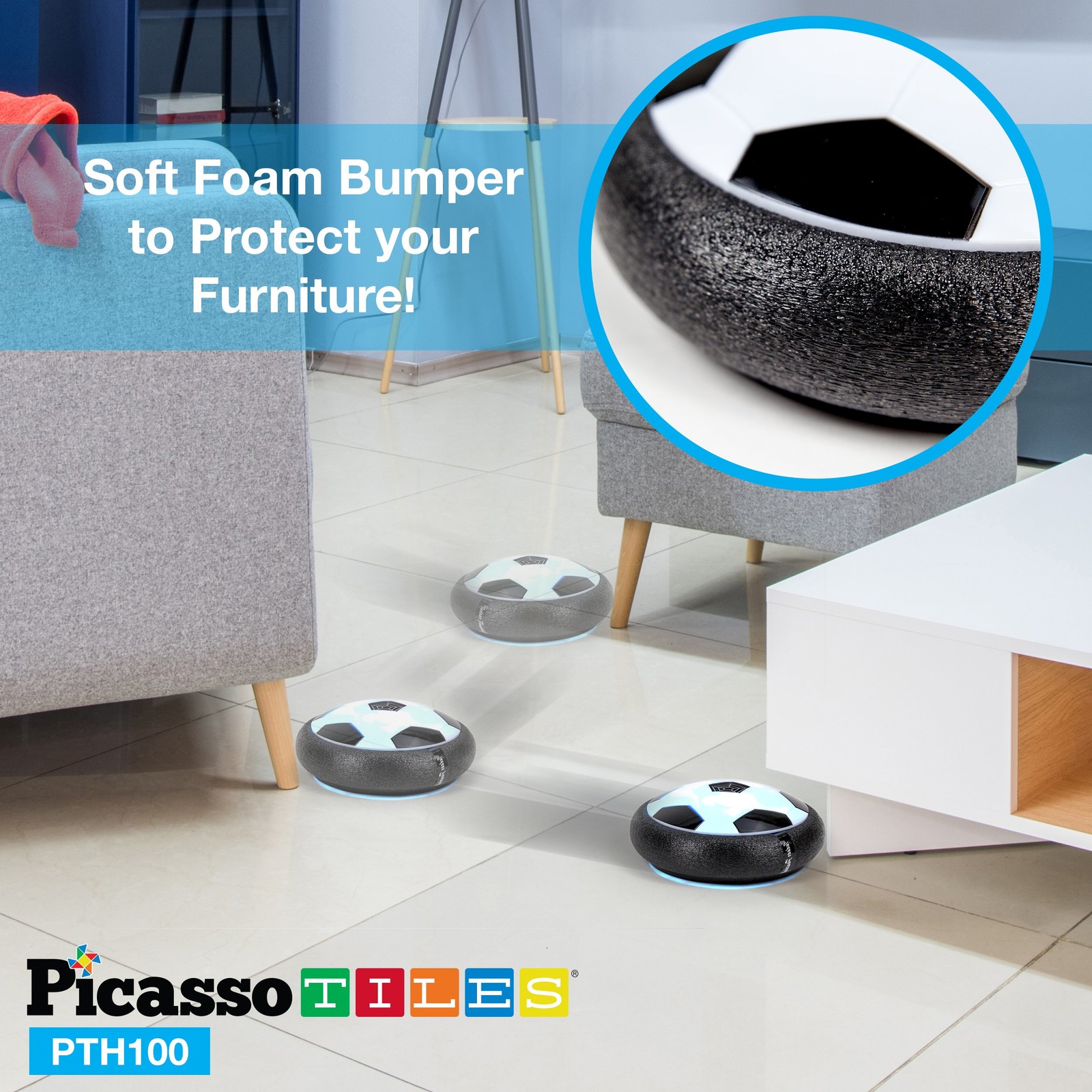 как выглядит PicassoTiles Hoverball Air Hockey Soccer Floating Disc with LED Medium, Black фото