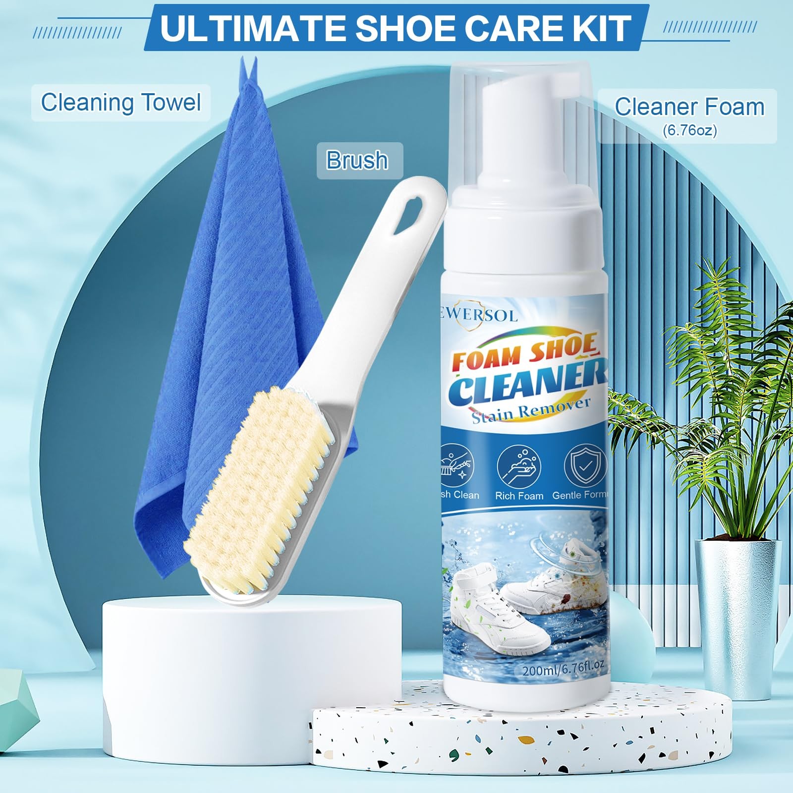Shoe Cleaner Sneakers Cleaning Kit White Foam 6.76 oz,