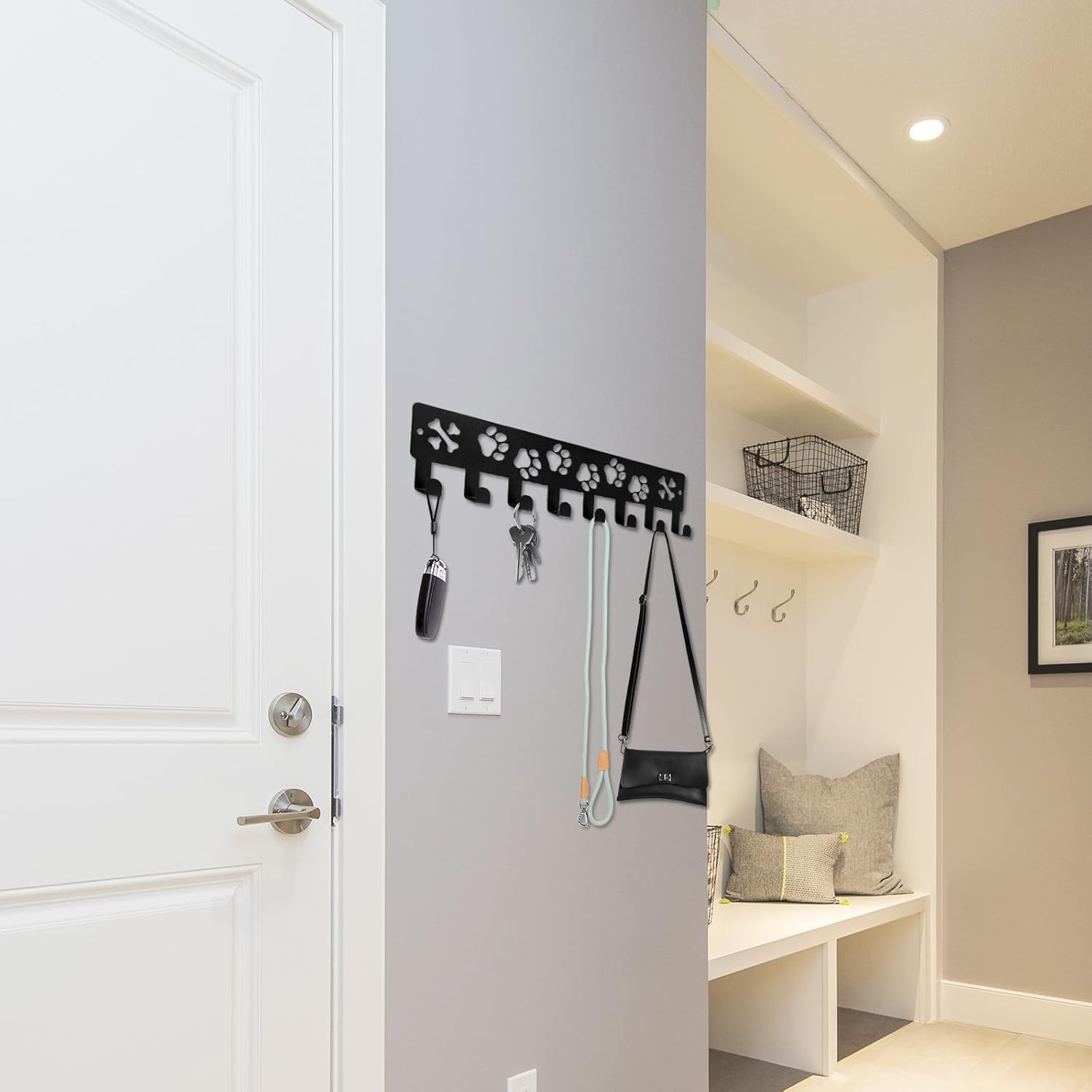 Key Holder Wall Mount Dog Leash Holder for Wall, Metal Key Rack with 8 Hooks f