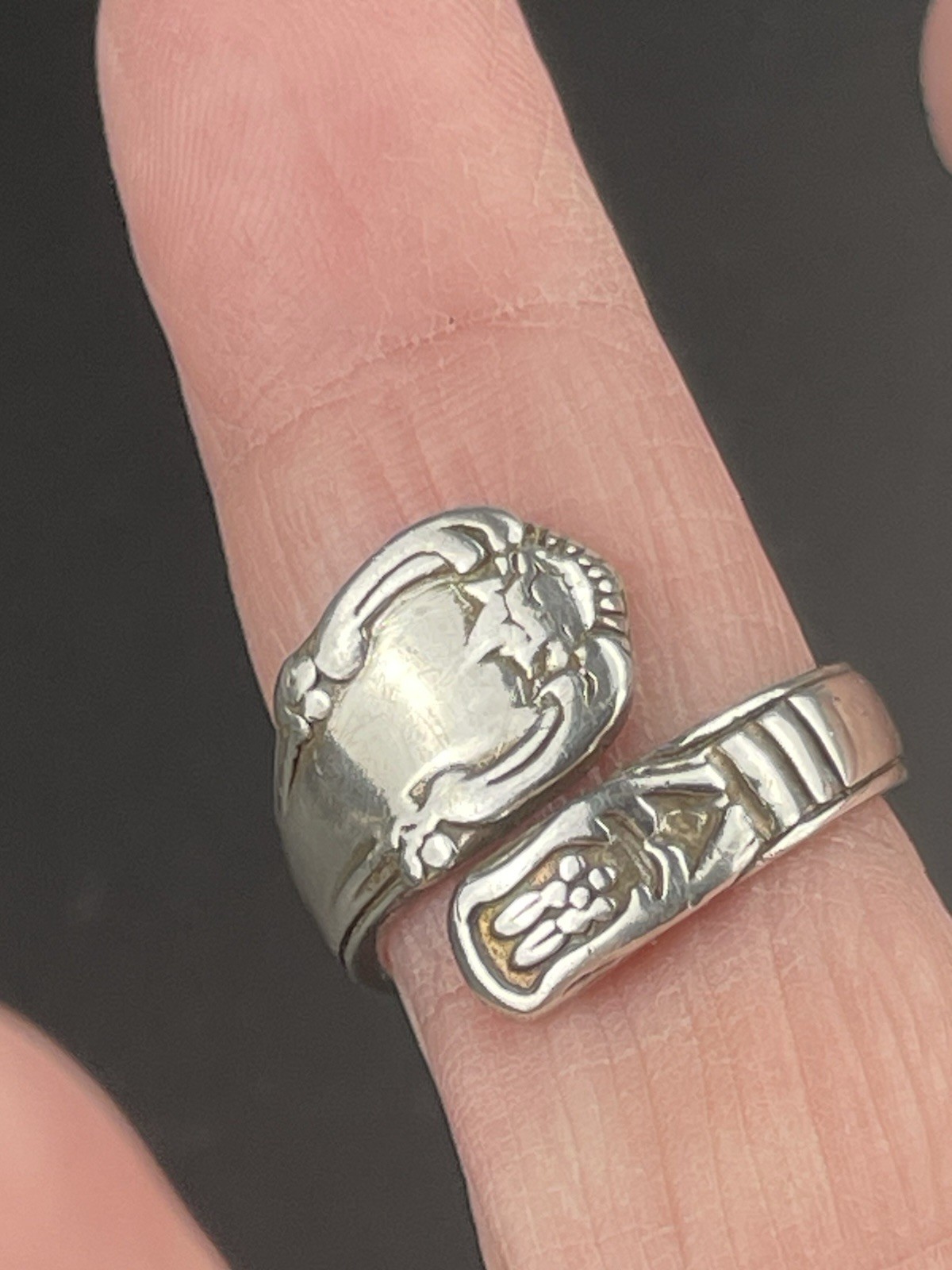 как выглядит Vintage Silver Spoon Ring Retro 6.5g /0.23oz Adjustable Ring Size 7.25 фото