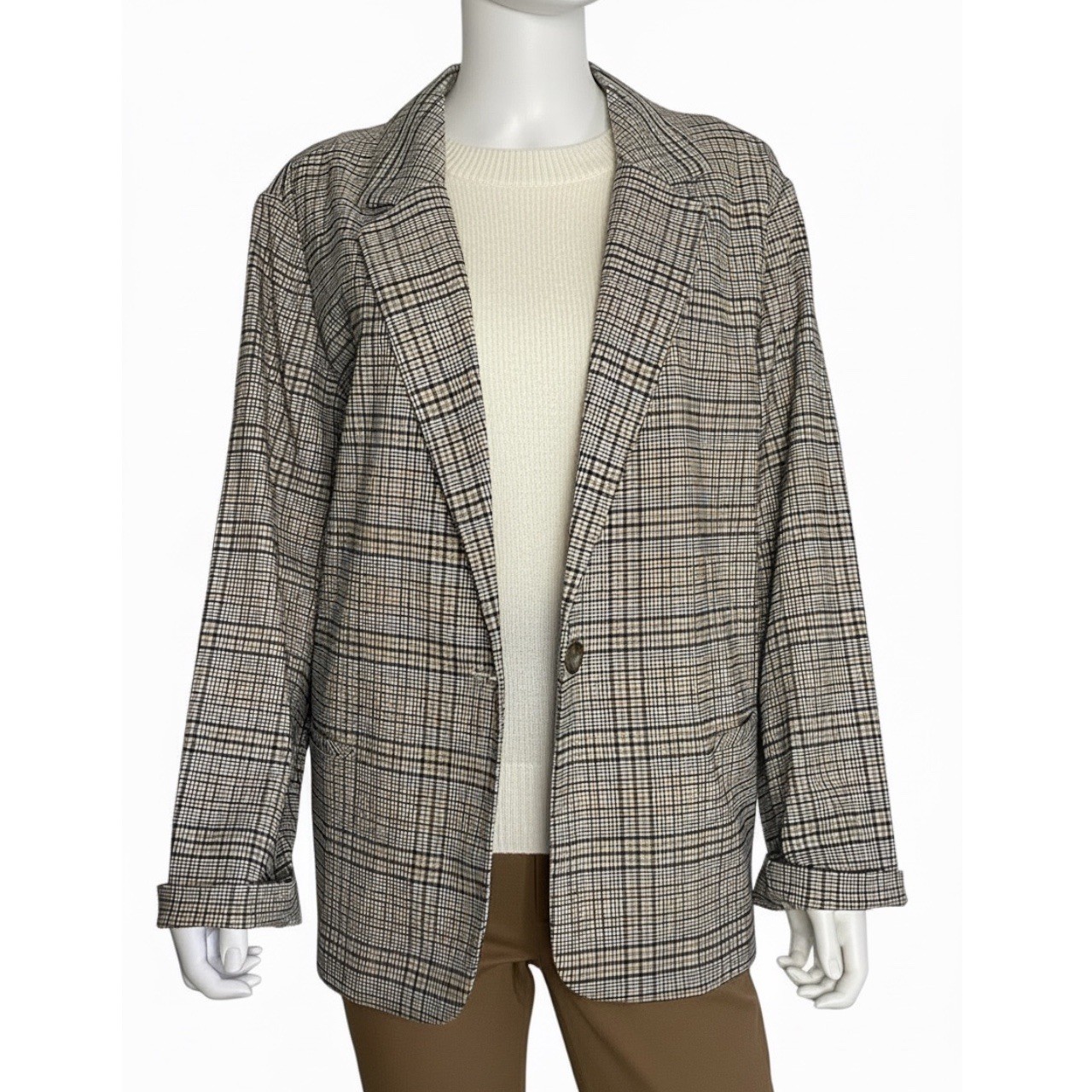 NWT 139 J Jill Brown Black Gold Plaid Blazer Jacket Sz XL