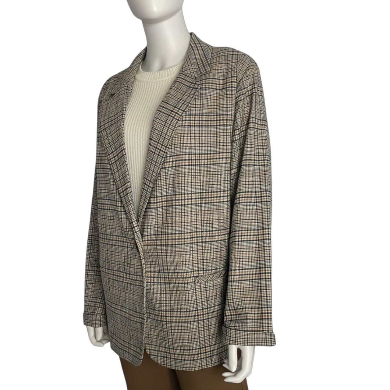 как выглядит NWT 139 J Jill Brown Black Gold Plaid Blazer Jacket Sz XL фото