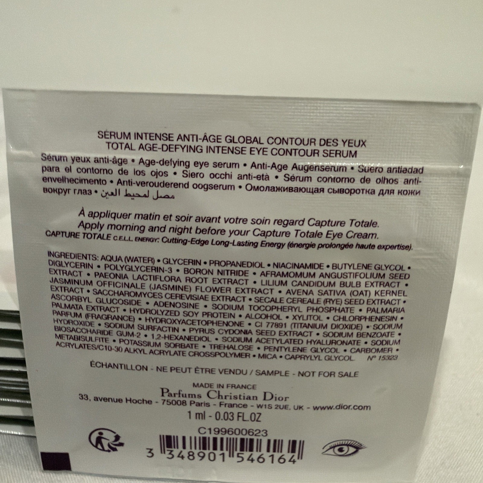 Lot of 20 Christian Dior Capture Totale Cell Energy Super EYE Serum Packets