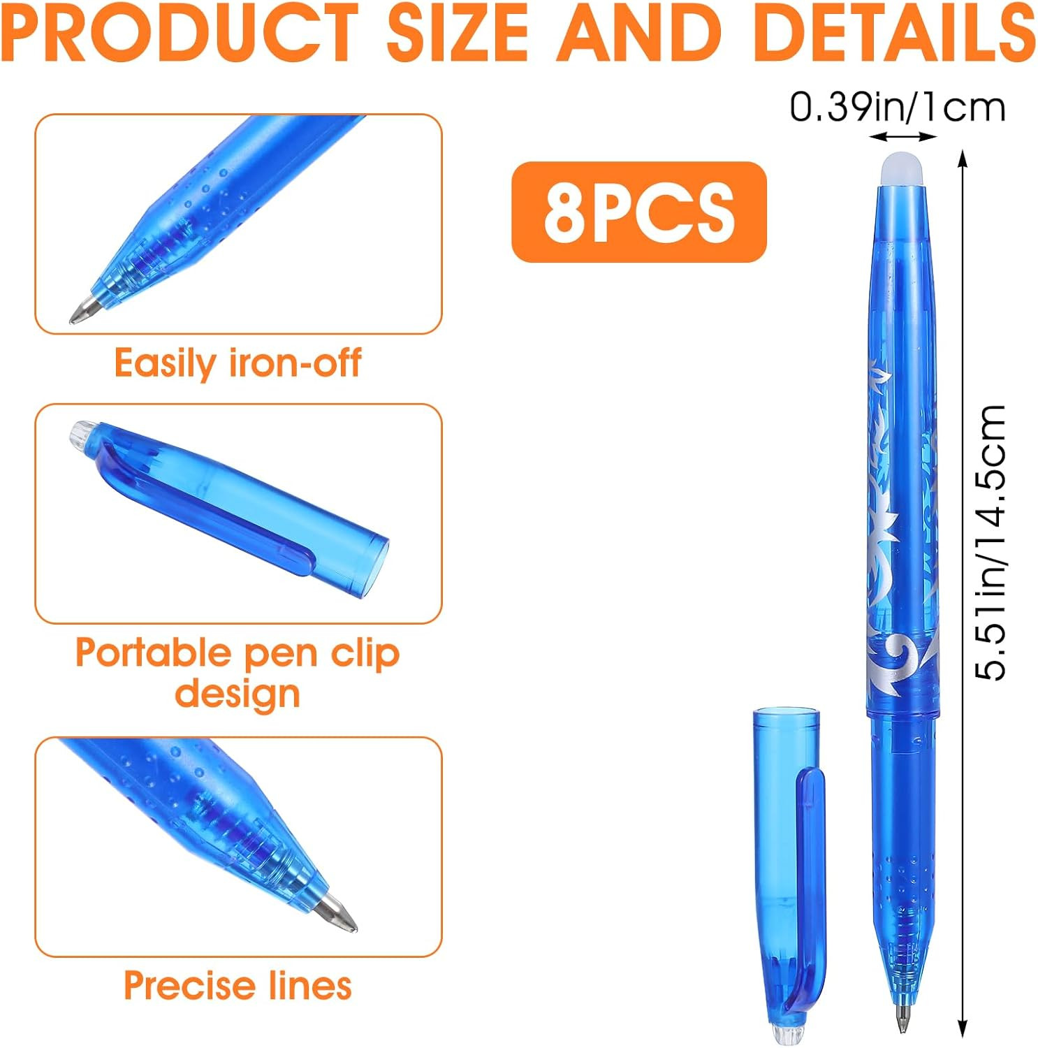 8Pcs Heat Erasable Pens for Fabric, Fabric Marking Pens Fabrics Markers No Ghost