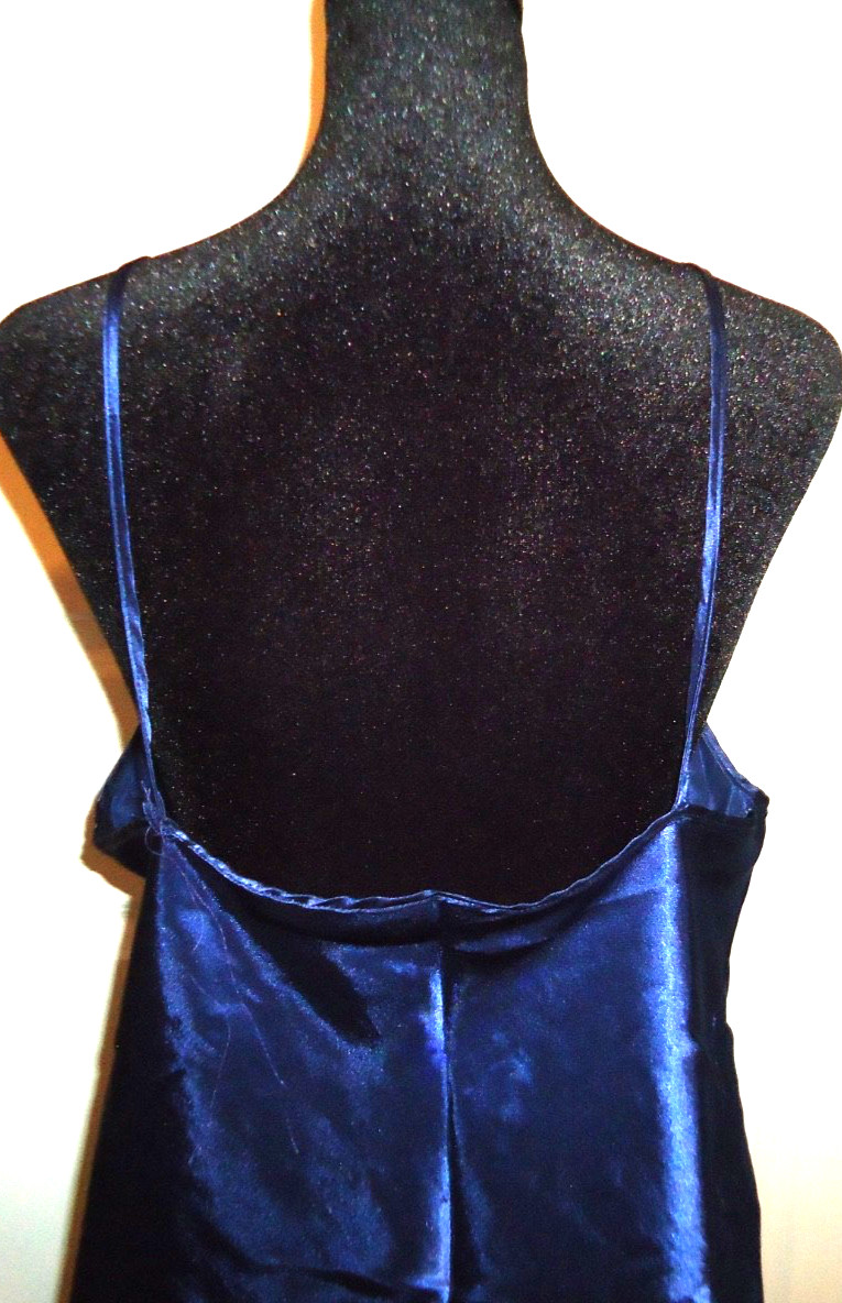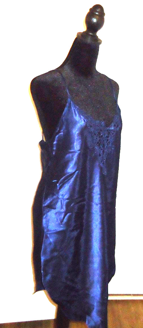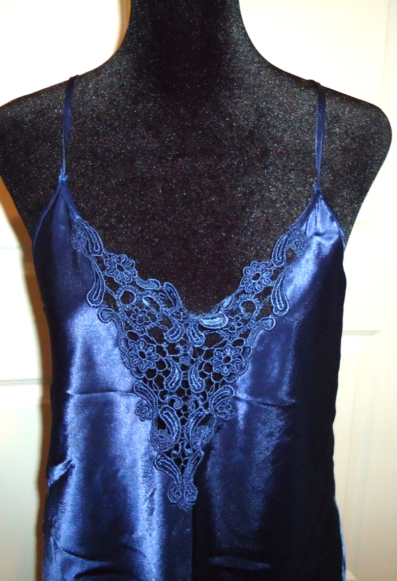как выглядит Vtg-90s Cinema Etoile Feminine Nightgown Lingerie Dark Blue Satin Lace Size-L фото