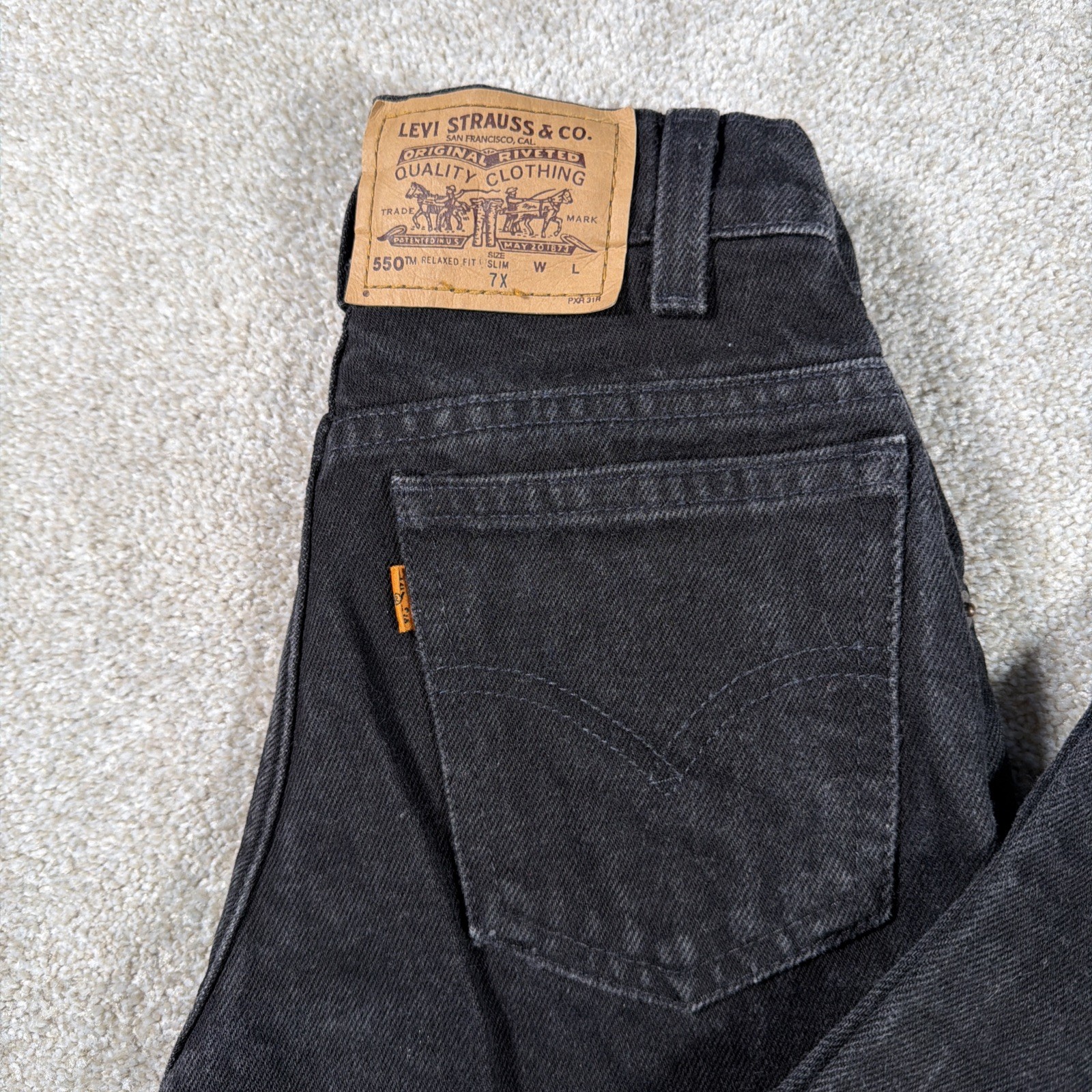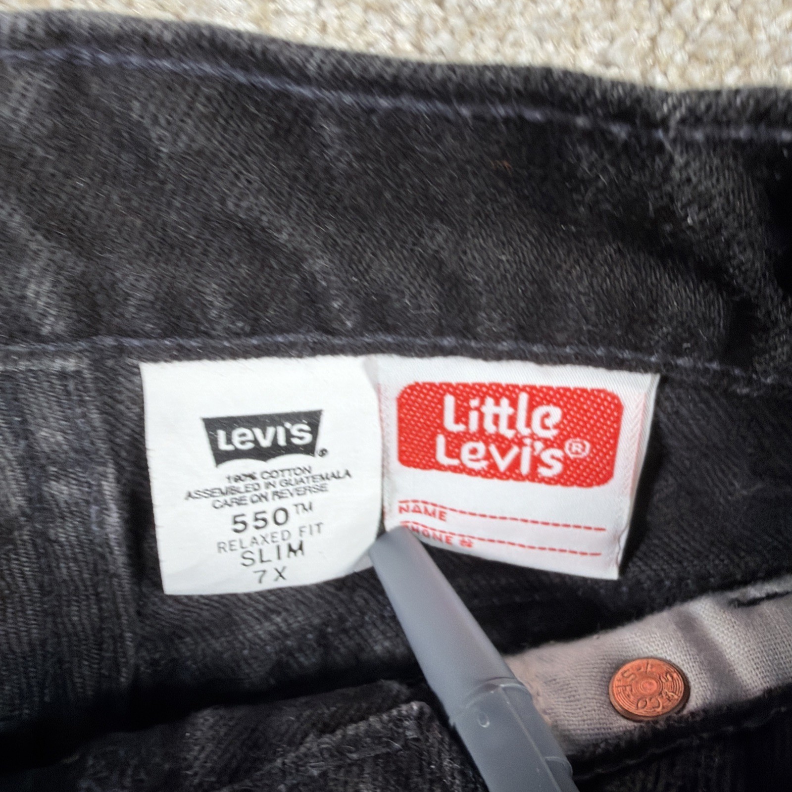 как выглядит Vintage Little Levis Kids 550 Slim Fit Dark Gray 7X FITS 20 X 21 Orange Tab 90s фото