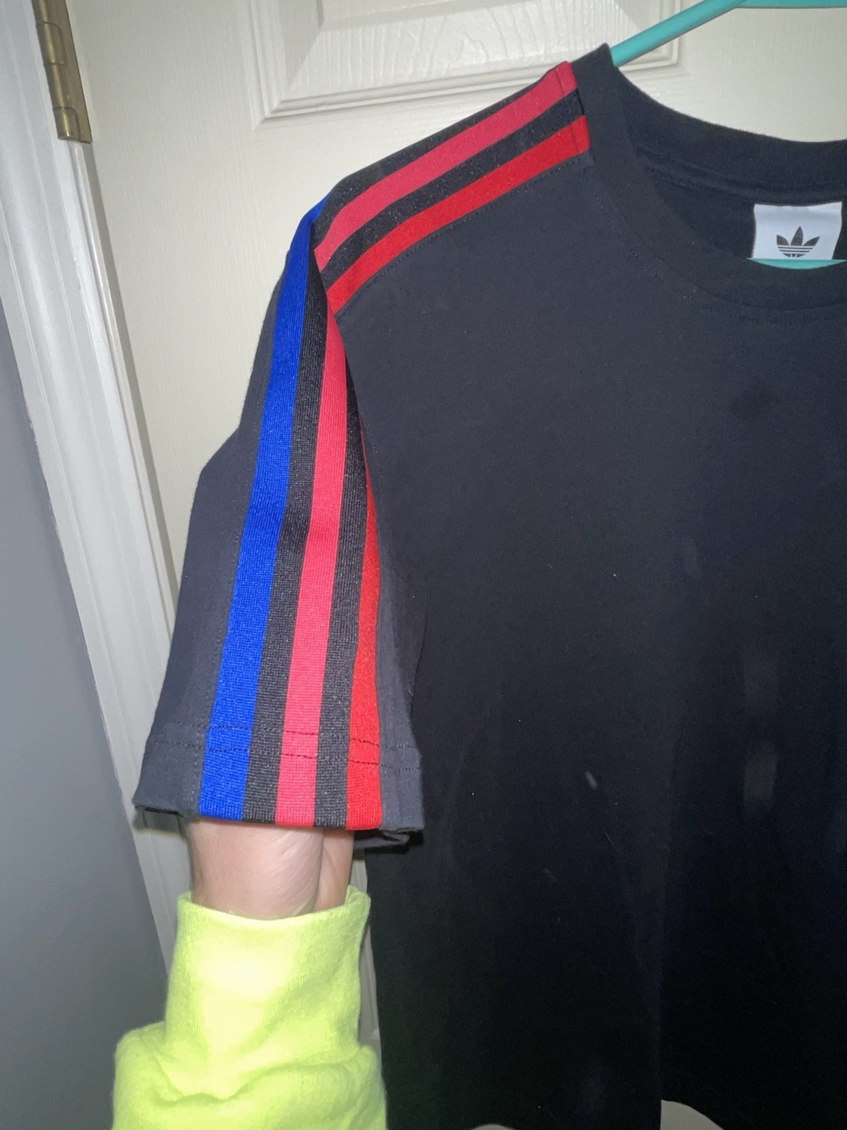 как выглядит Adidas Retro Trefoil 3 Stripe T-Shirt Black Red Blue Men s Small фото