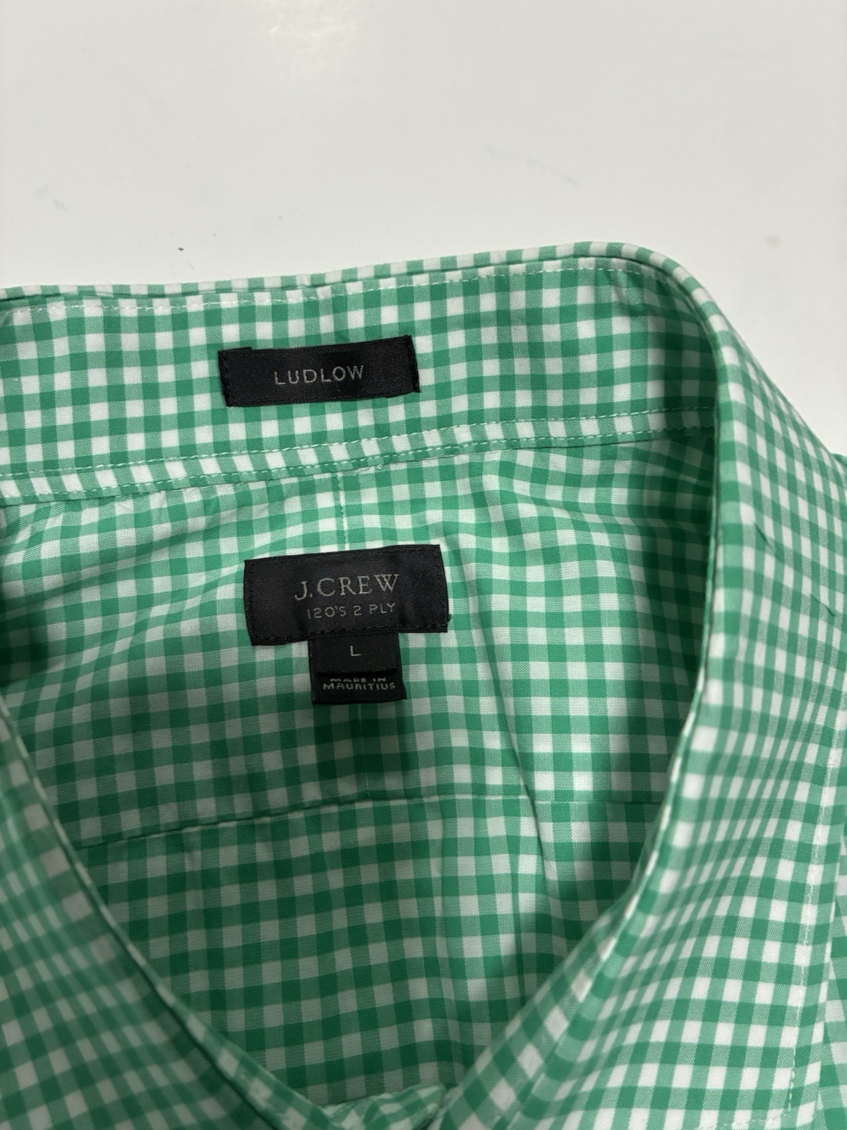 J.Crew Ludlow Men s Button-Down Shirt Green Gingham Check L 120s 2-Ply Cotton L