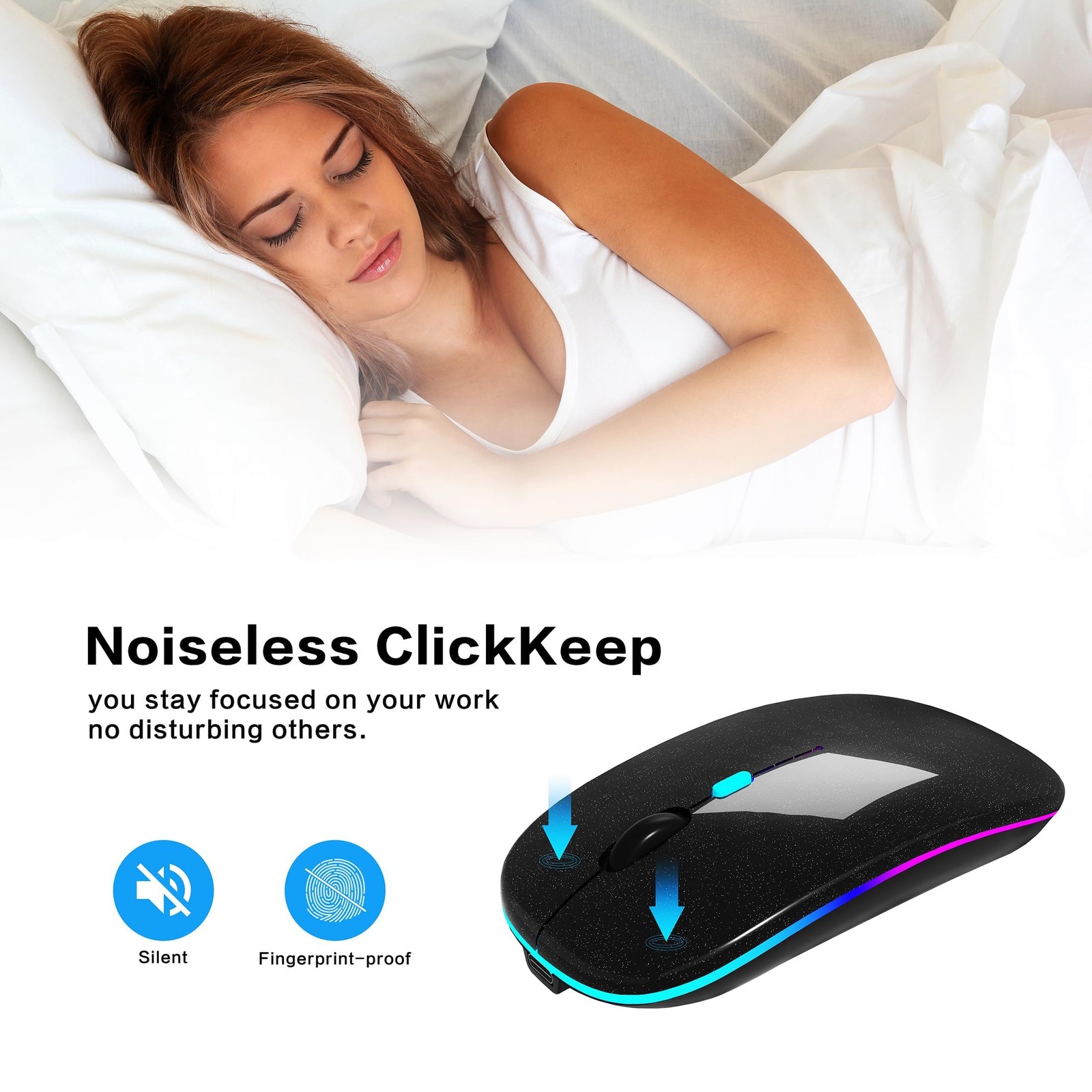 Wireless Bluetooth Mouse Rechargeable Laptop Mice with LED Use PortableBT5.2 ...