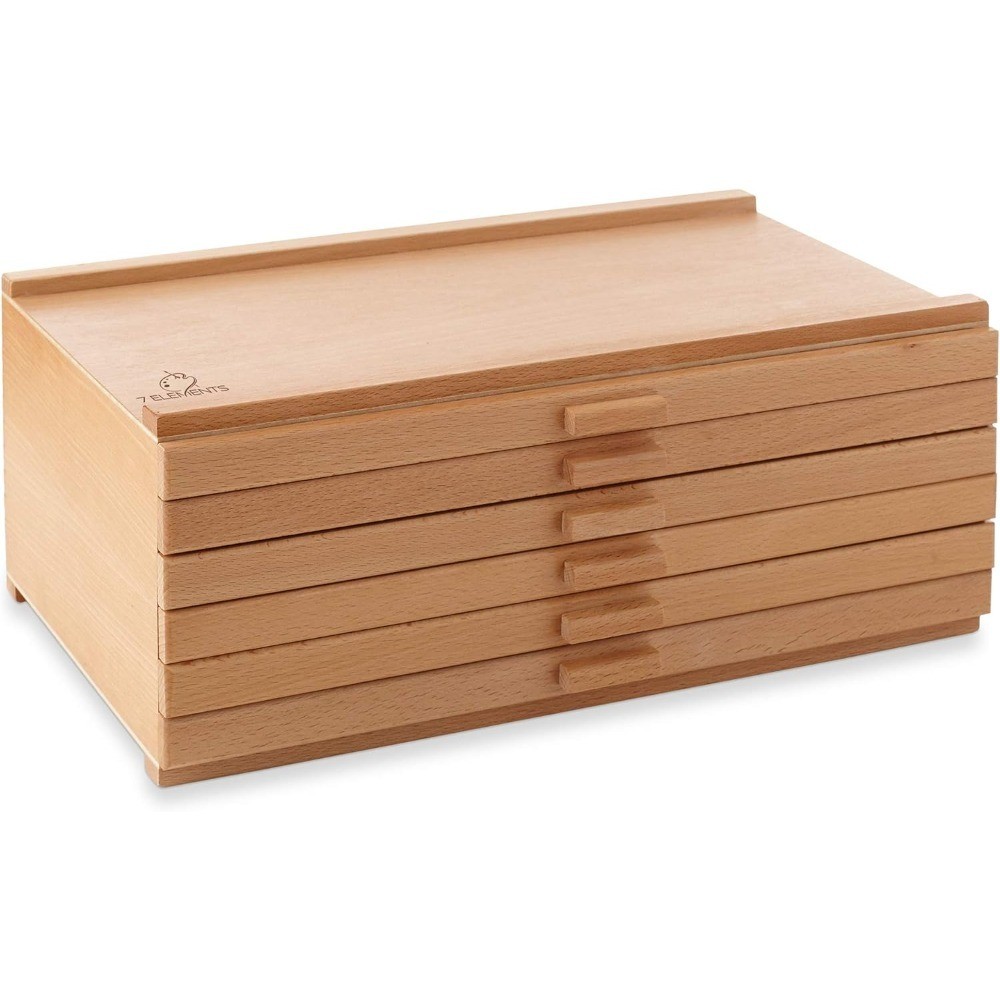 Wooden Art Supply Storage Box with 6 Drawers for Pastels Pencils Pens Markers