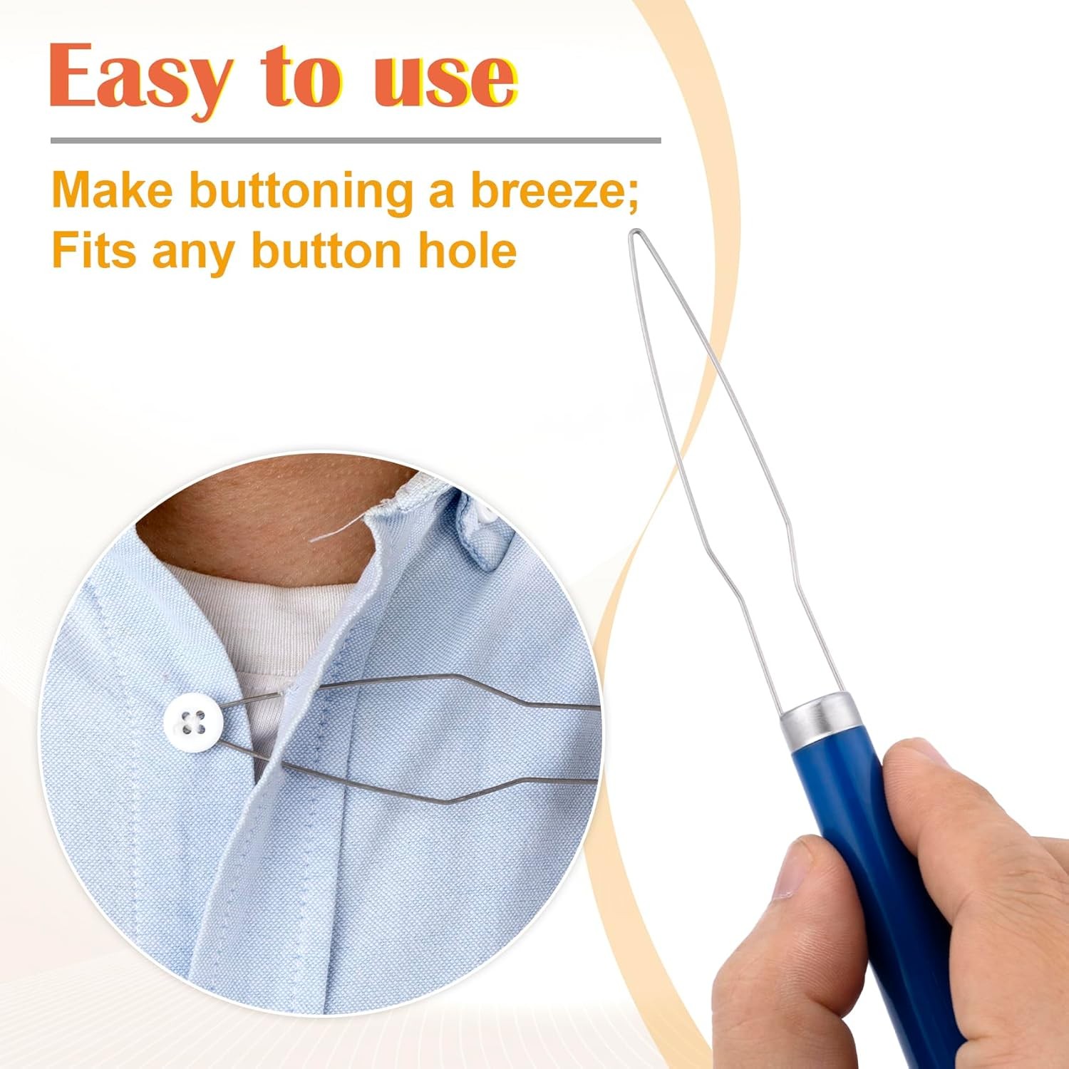 Easy Button Hook, Steel Button Helper Tool for Elderly, Wide Plastic Handle Butt