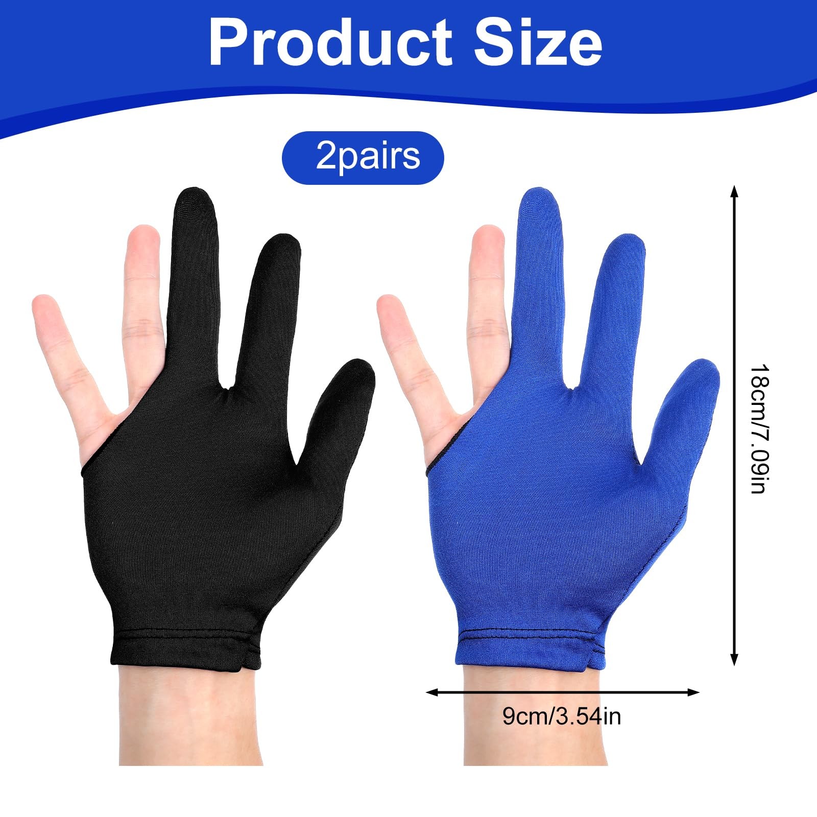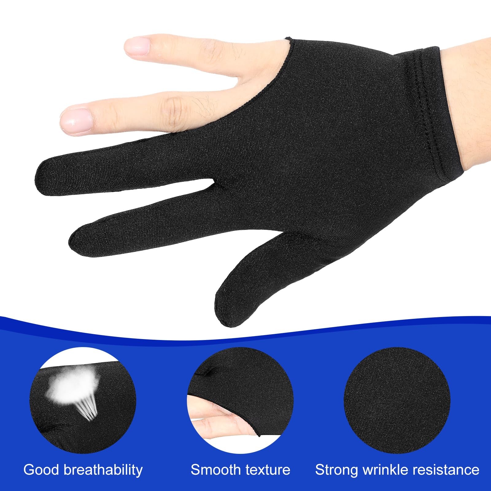 Apojgitn 2 Pcs Billiards Glove, Breathable 3 Fingers Pool Gloves Black,Blue