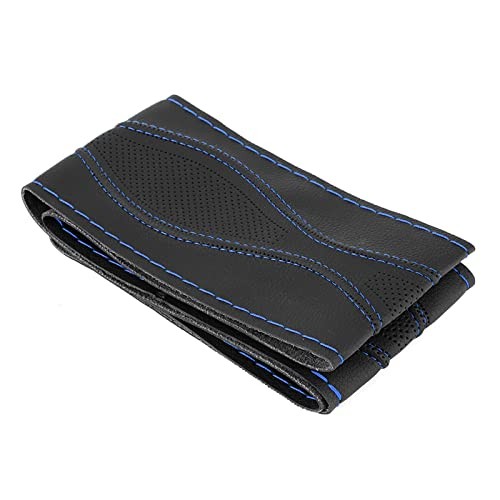 15in Leather Steering Wheel Cover, DIY Hand Sewn Stitch On Wrap with Dark blue