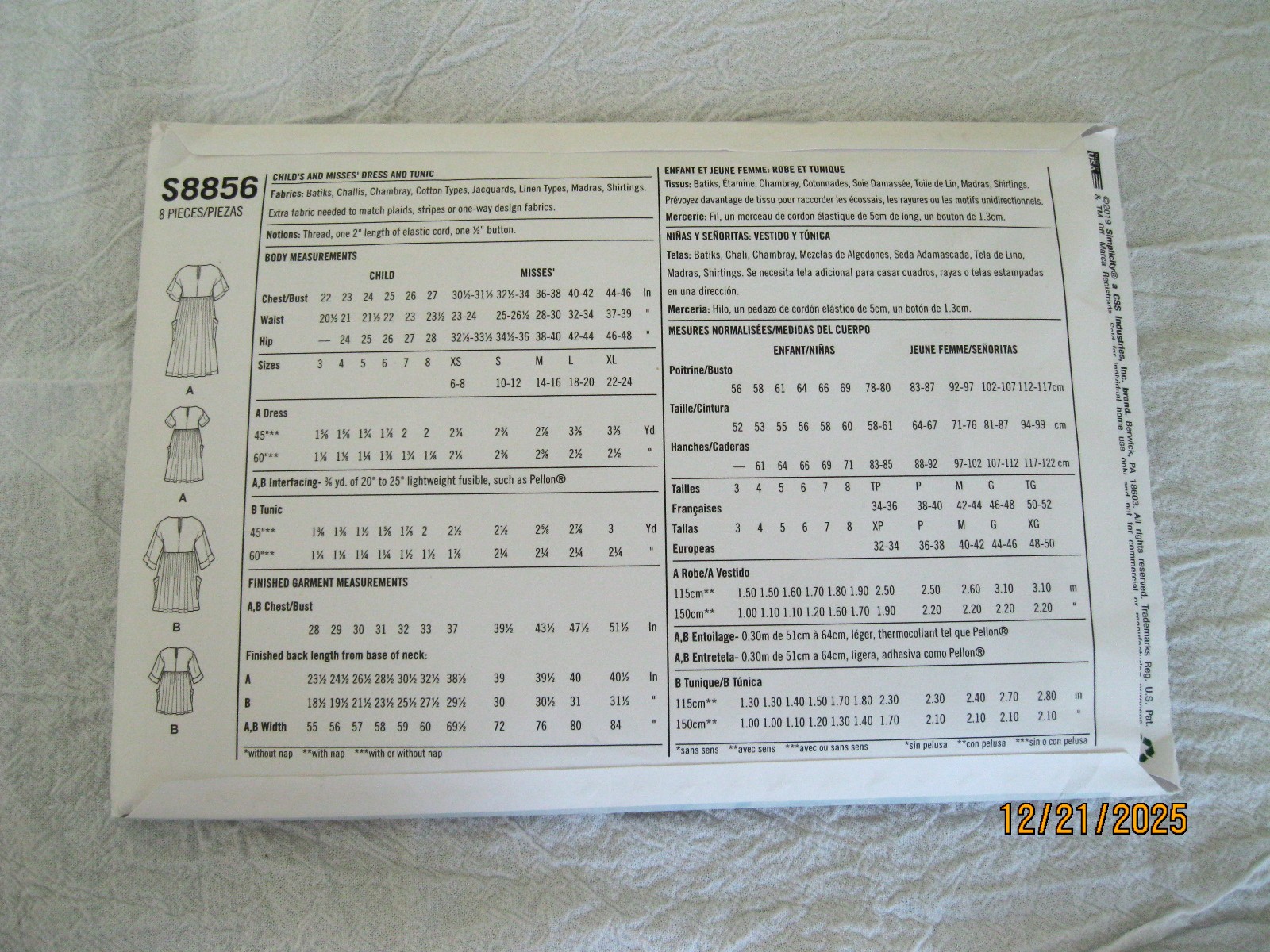 как выглядит Simplicity S8856 Childs and misses dress and tunic 3-8, XS-XL UNCUT фото