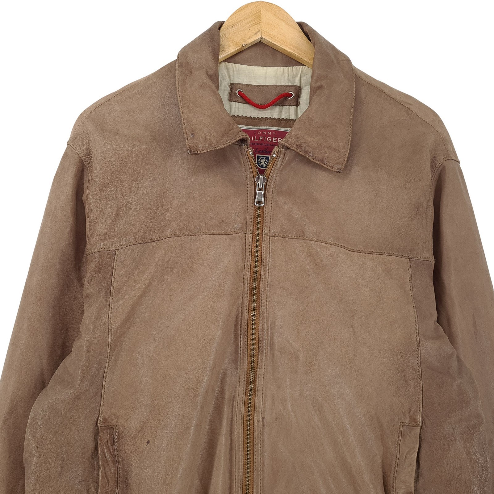 как выглядит Vintage Tommy Hilfiger Leather Jacket Men Full Zip Beige Ux1 Size 52 фото