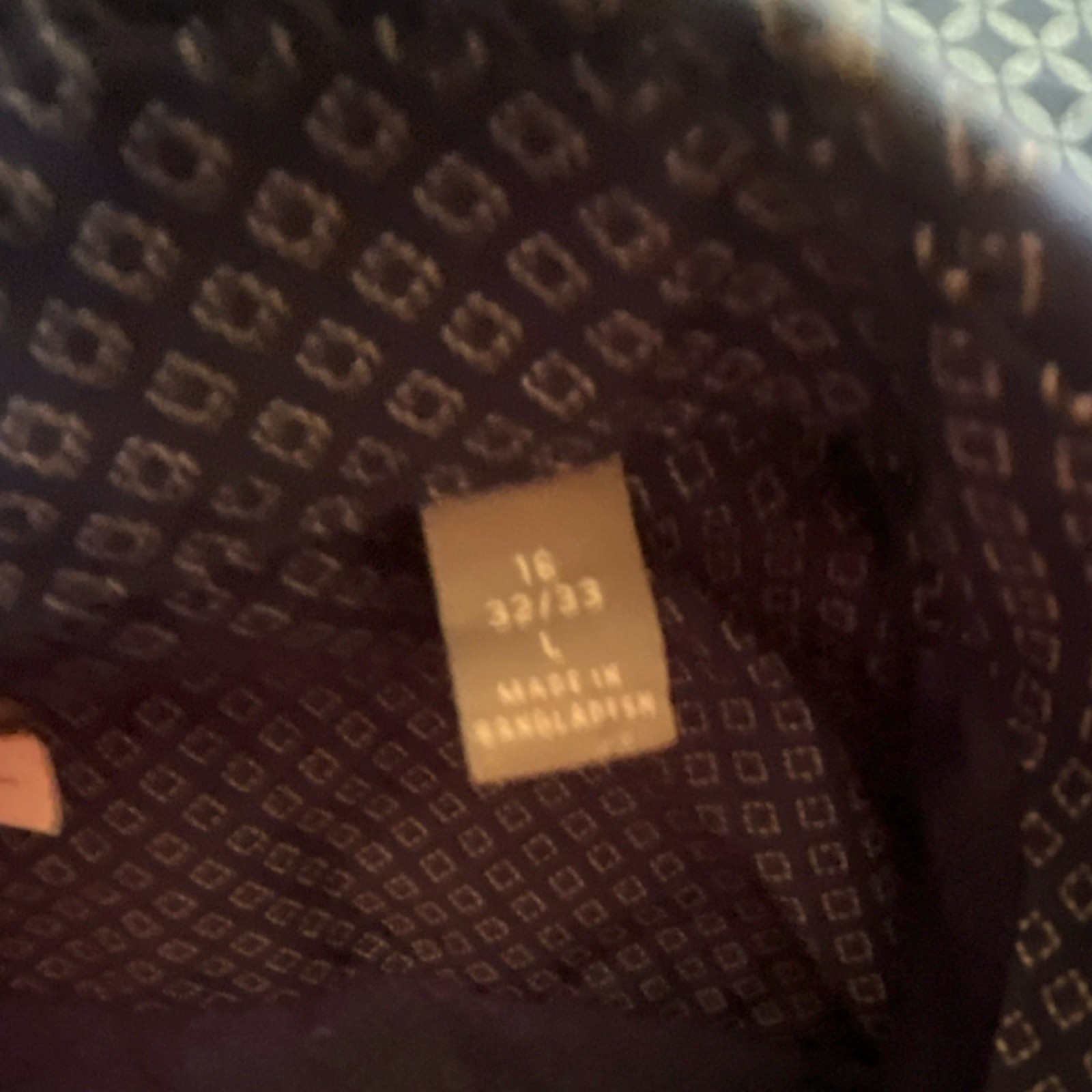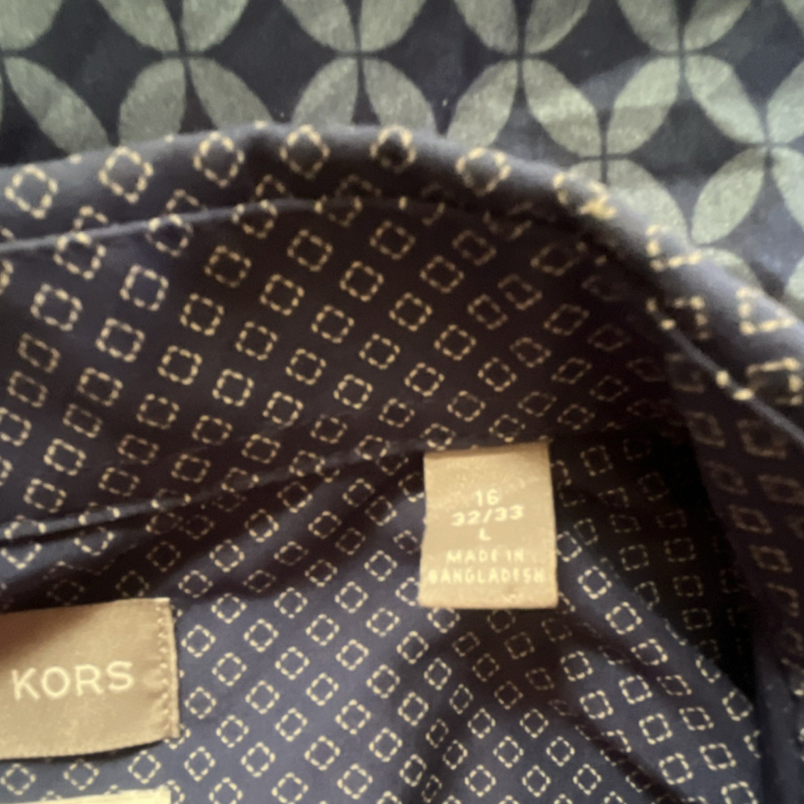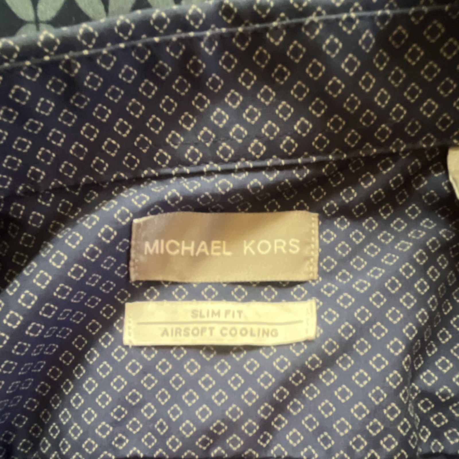 как выглядит Michael Kors Slim Fit Geometric Dress Shirt Airsoft Cooling Navy 16 L 32/33 фото