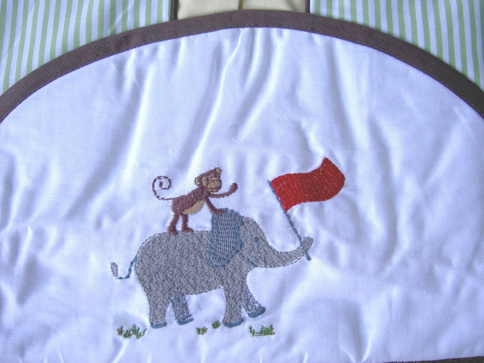 как выглядит FAO SCHWARZ JOURNEY DIAPER STACKER LIGHT GREEN WHITE STRIPED BABY ELEPHANT NIP фото