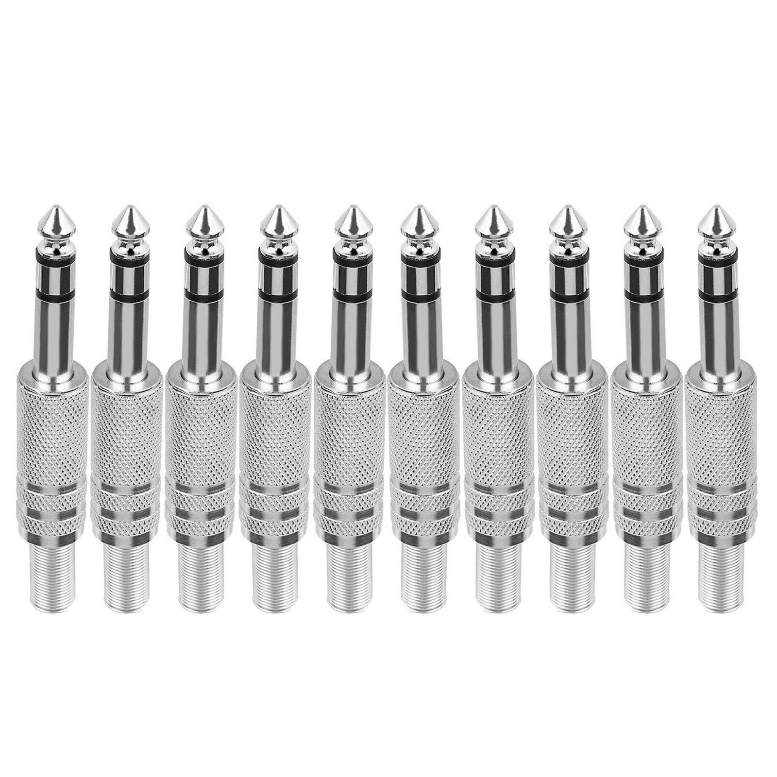 10Pcs 1/4 6.35mm Male Mono Plug Stereo Audio Cable Jack Connector Solder Type