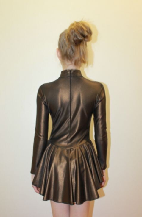 как выглядит Ice Skating Dress 279-00 for Girl 134-140 cm Spandex Bronze Metallic Size M kids фото