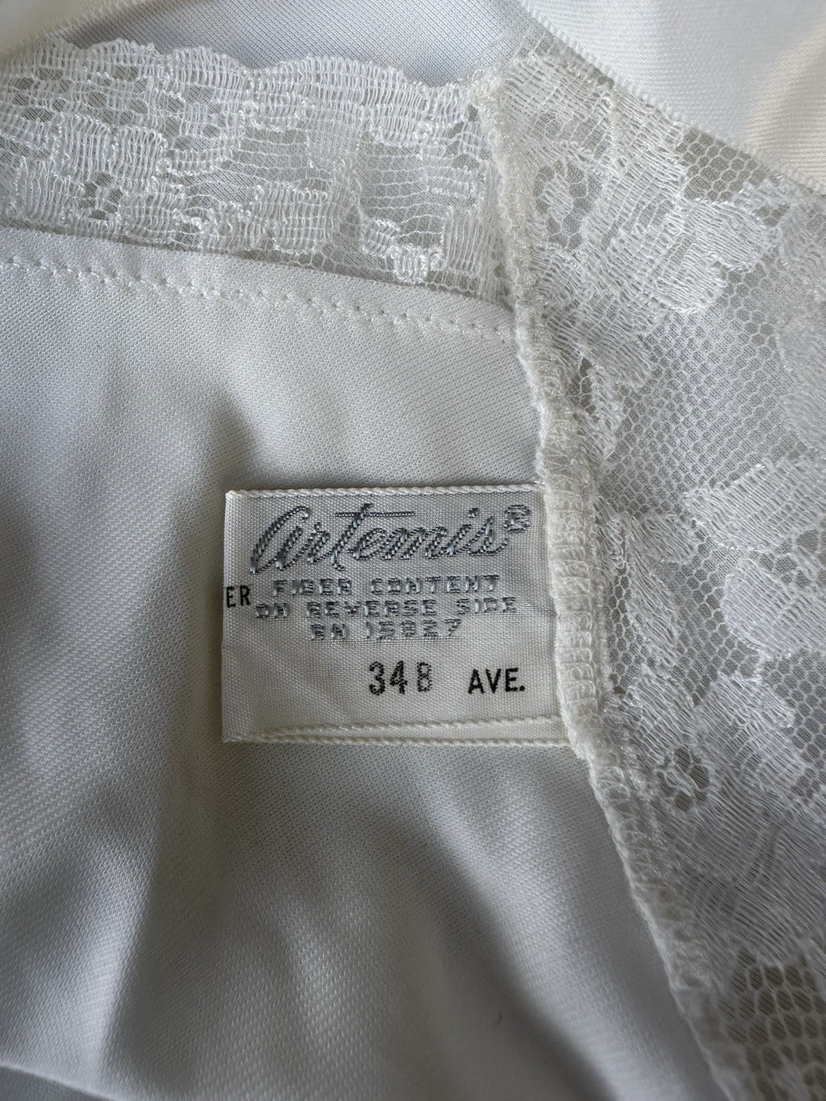как выглядит Vtg 60s Gossard Artemis White Slip Lingerie Nightgown Lace Bridal Coquette 34B фото