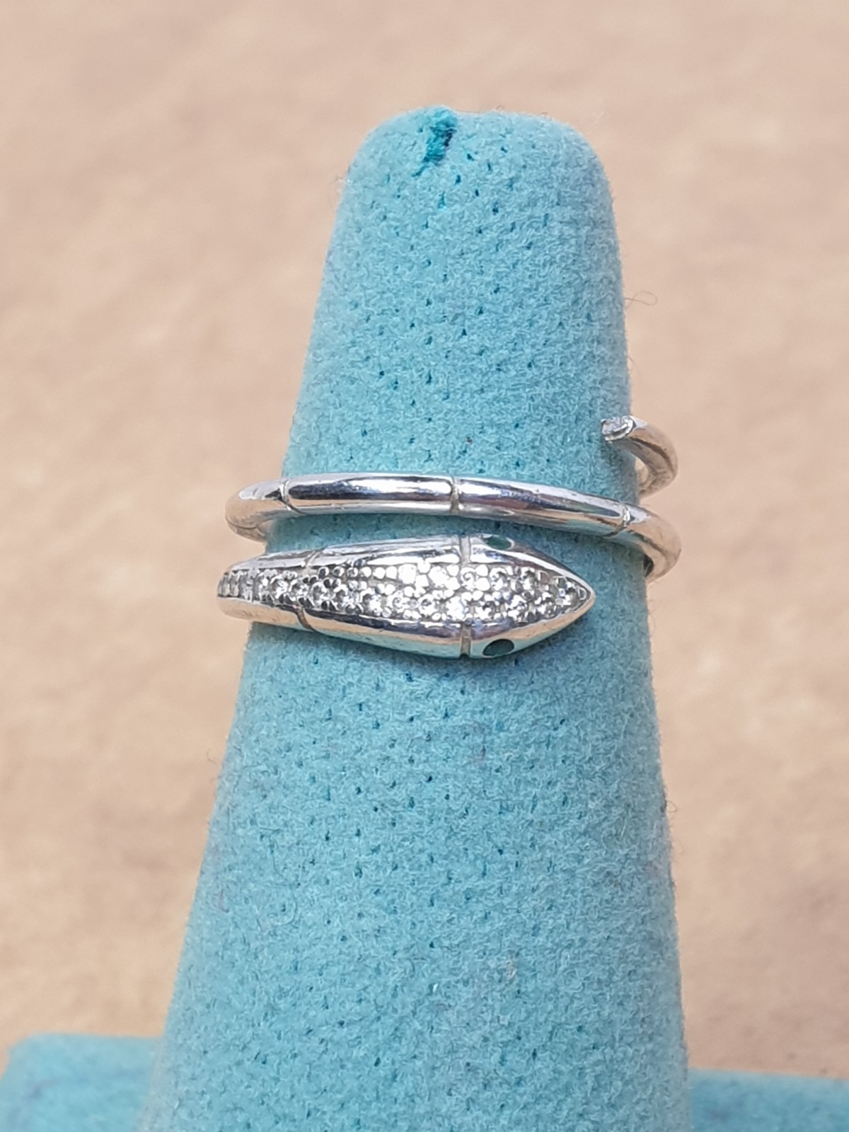 как выглядит Vintage Sterling Silver Snake Wrap Ring Size 6 Emerald Eyes With CZ фото