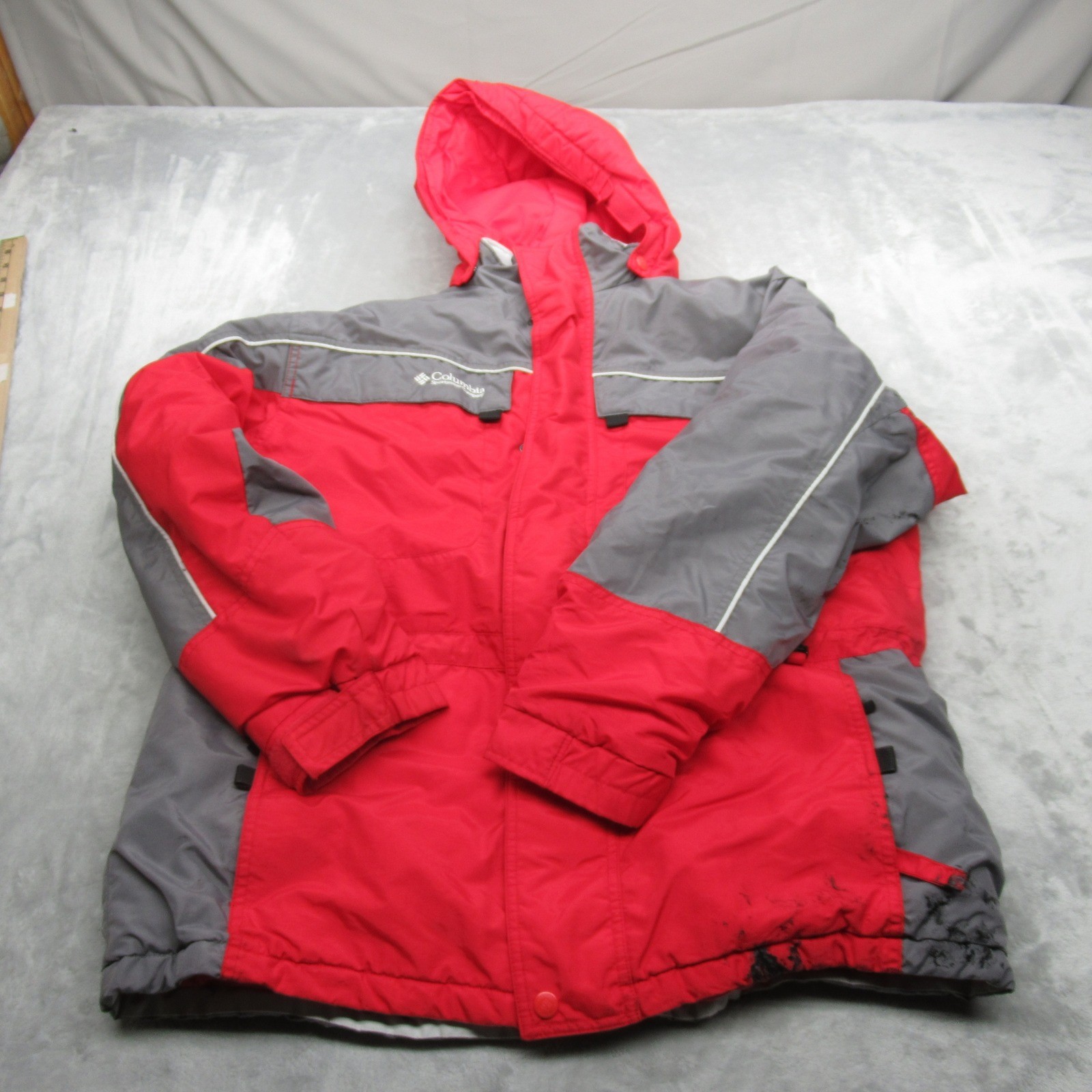 Columbia Jacket Youth 18/20 Red Hooded Insulated Waterproof Full Zip Puffer READ