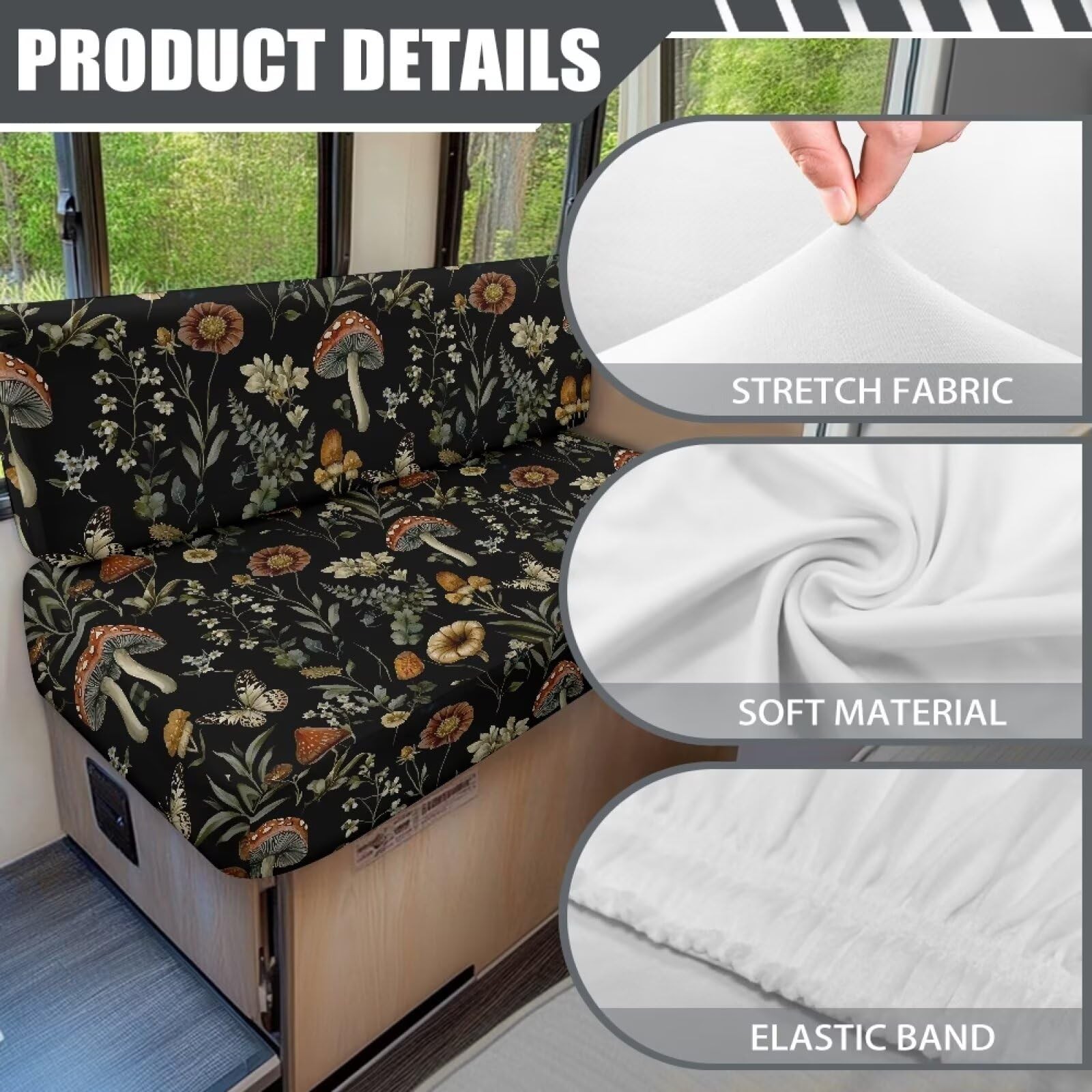 RV Dinette Cushion Covers Mushroom Leaf Stretch Elastic Camper Couch Cover wi...
