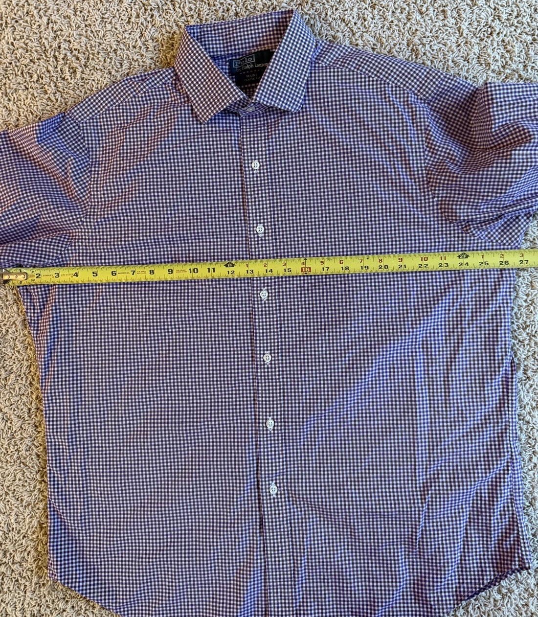 как выглядит Men s Polo Ralph Lauren Purple Check Classic Dress Shirt Size 17 34/35 фото
