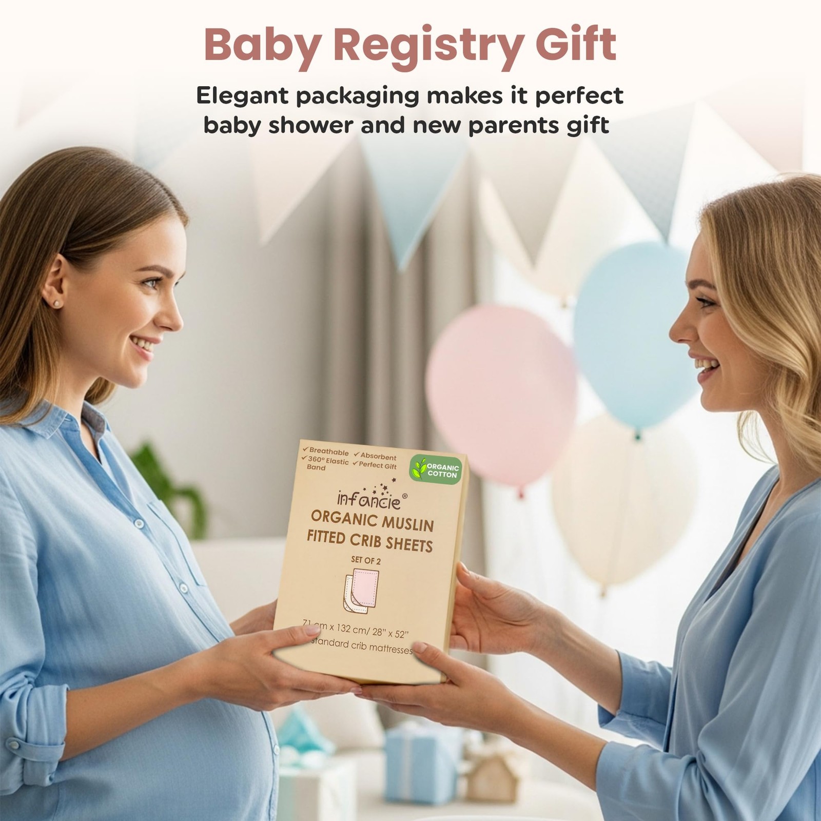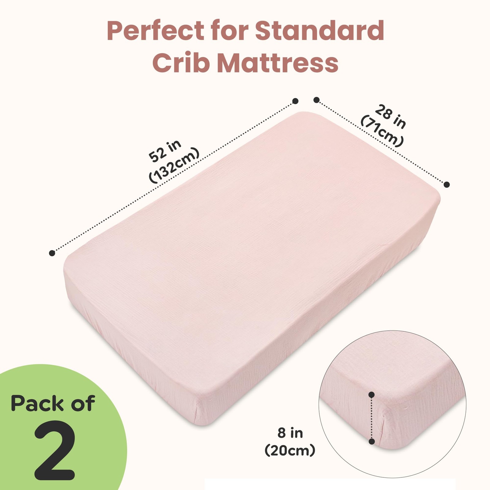 100 Organic Cotton Muslin Crib Sheets Set of 2 Soft Breathable Fitted ...