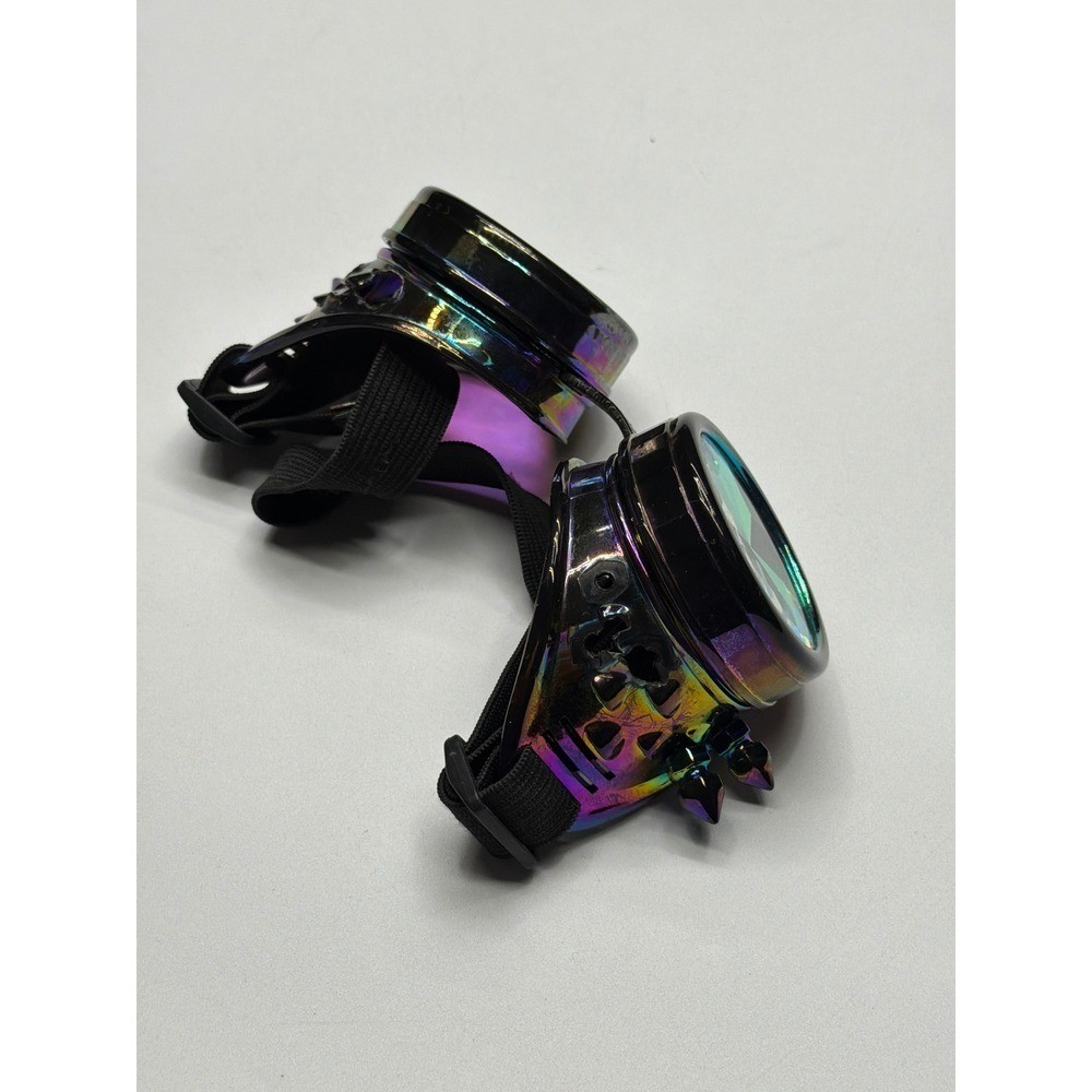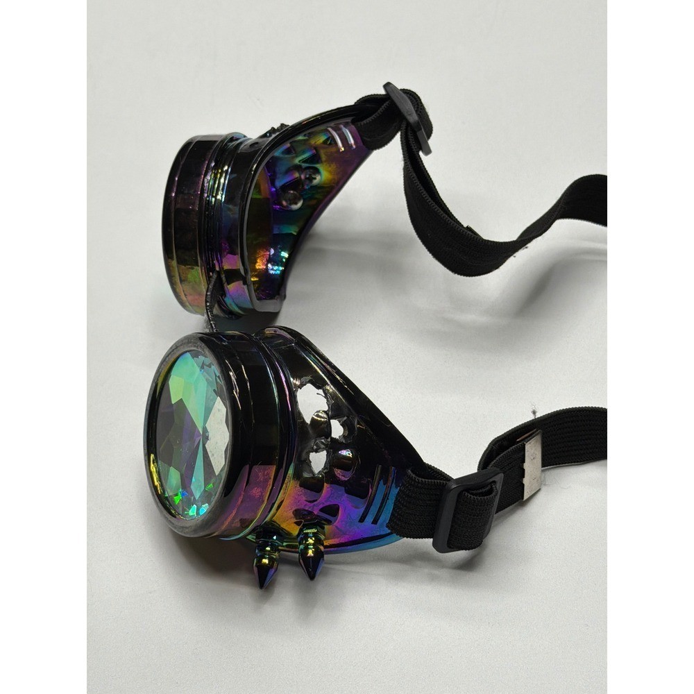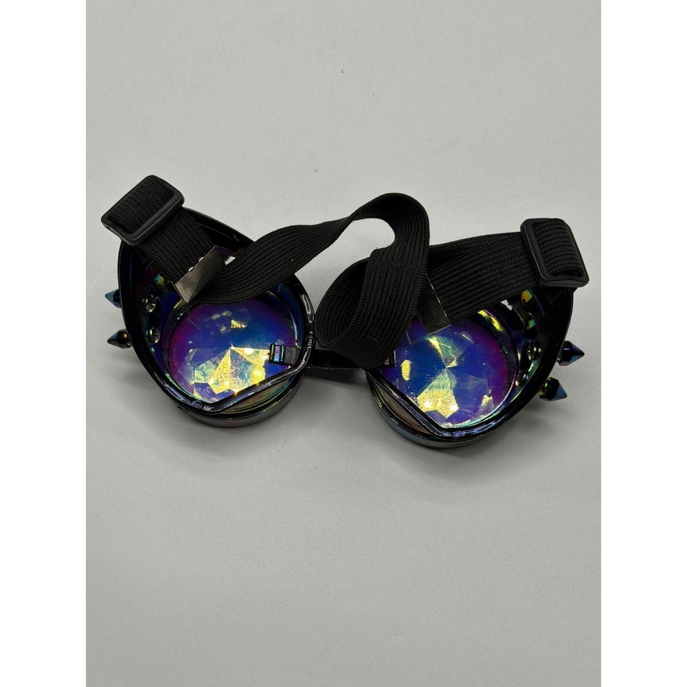 Steampunk Kaleidoscope Goggles Rainbow Crystal Lenses Spiked Rave Festival