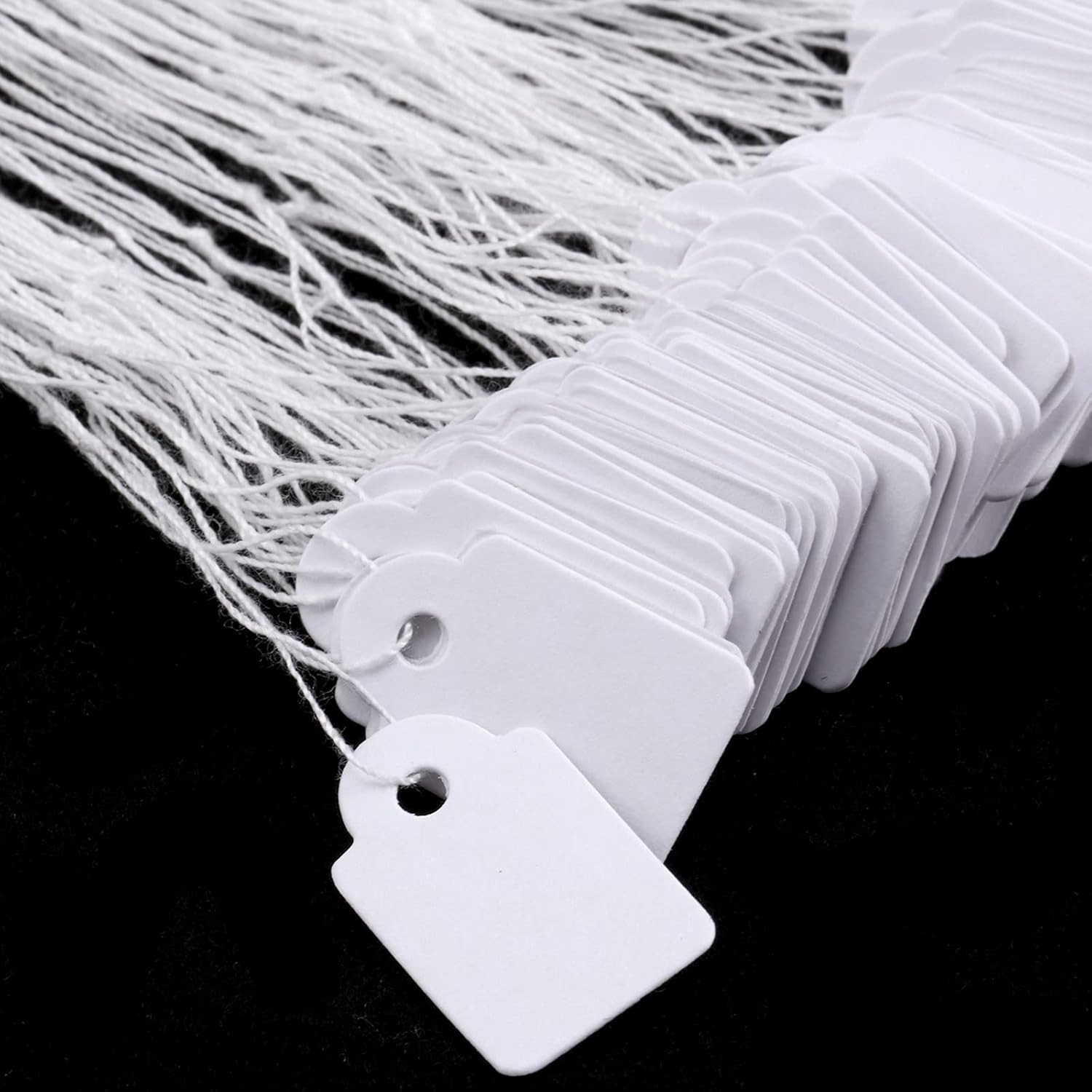 как выглядит 500 Pack White Price Tags with String Writable Hang Labels for Jewelry Clothing фото