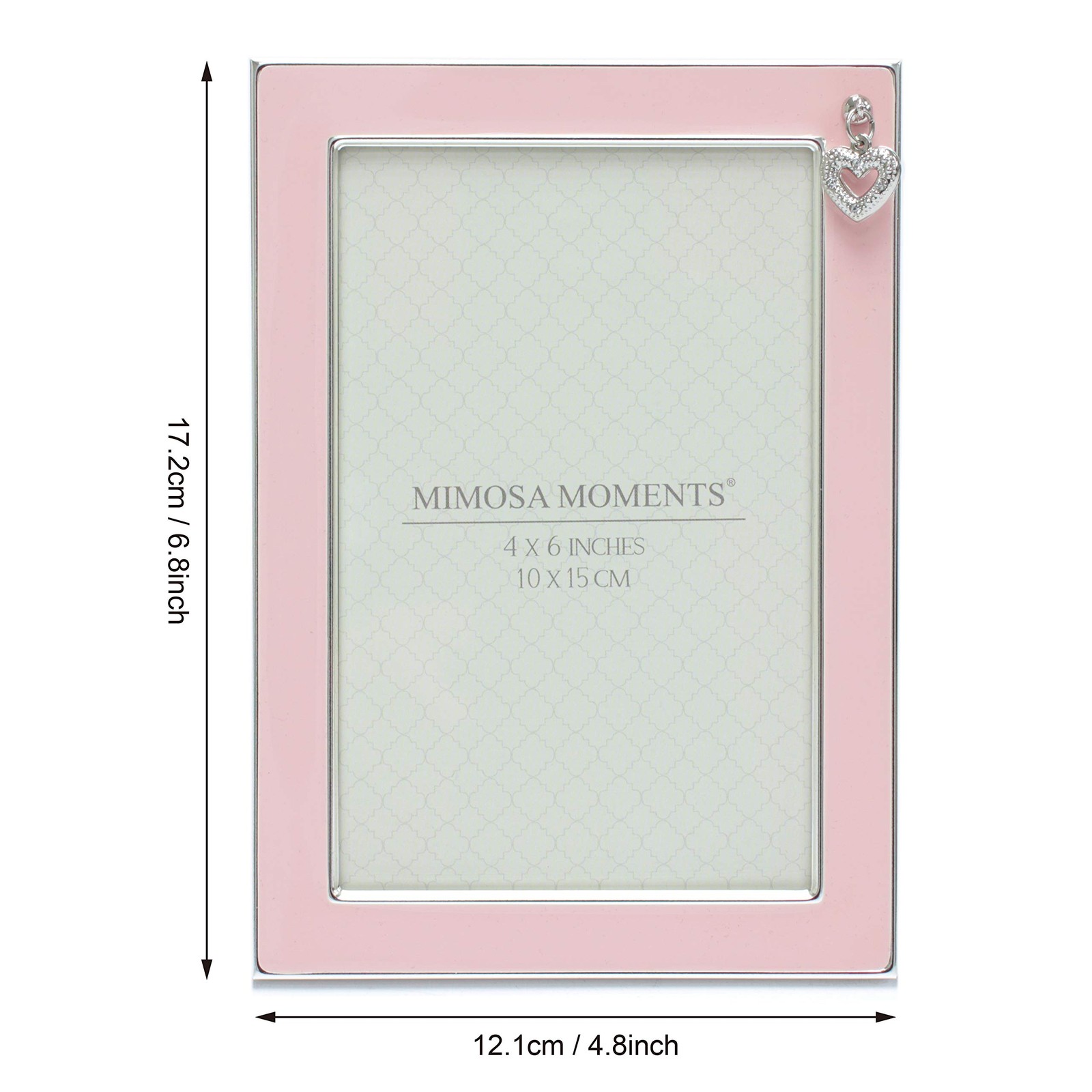 Silver Plated Metal Baby Picture Frame with Pink Enamel and a Heart Charm 4x...