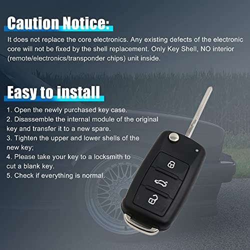 2pcs Replacement Flip Folding Keyless Entry Remote Key Case Shell for VW