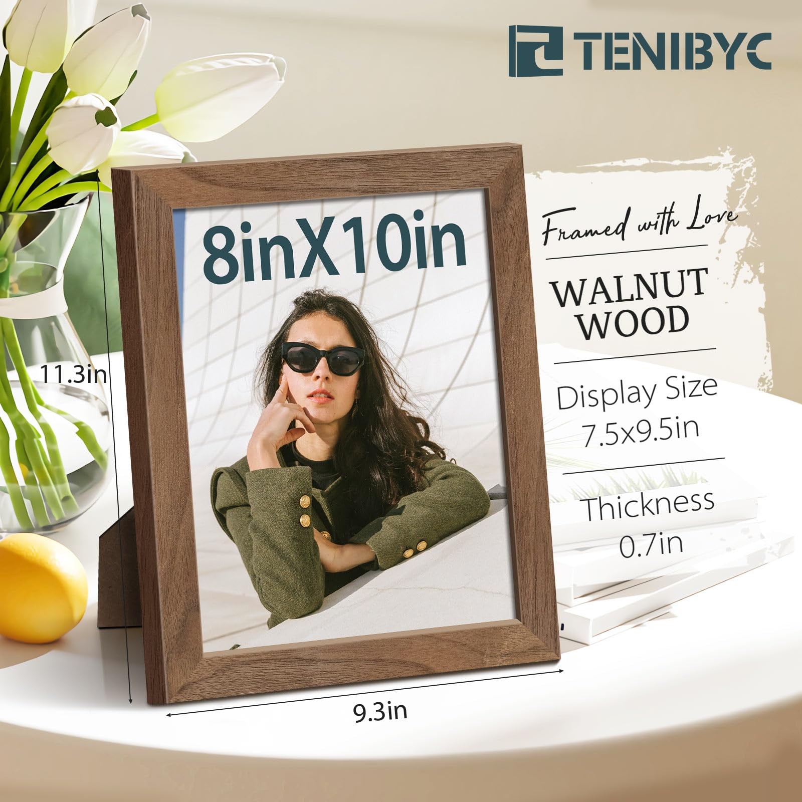 8x10 Walnut Picture Frame with HD Glass - 3pk, Natural Wood Brown Photo Frame...