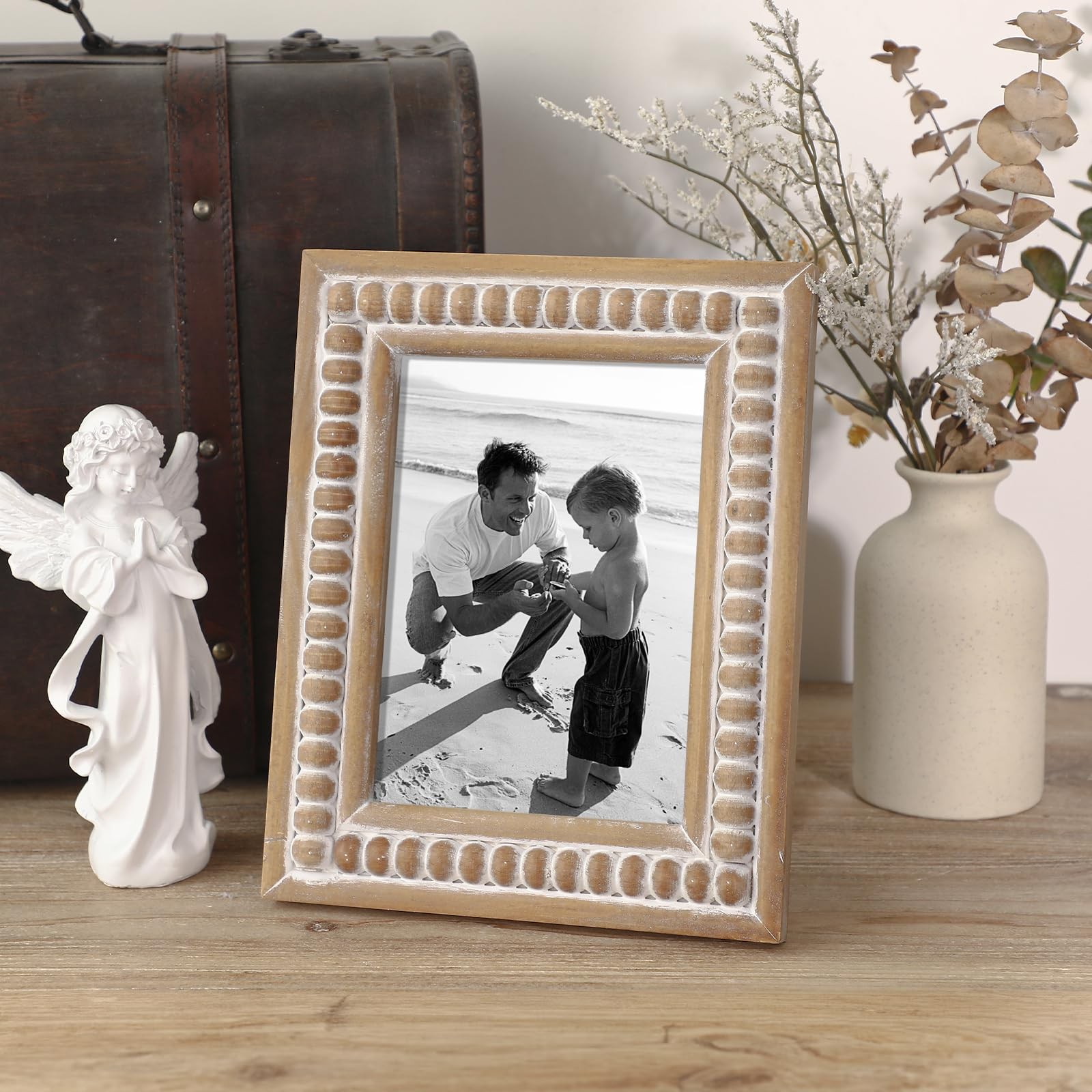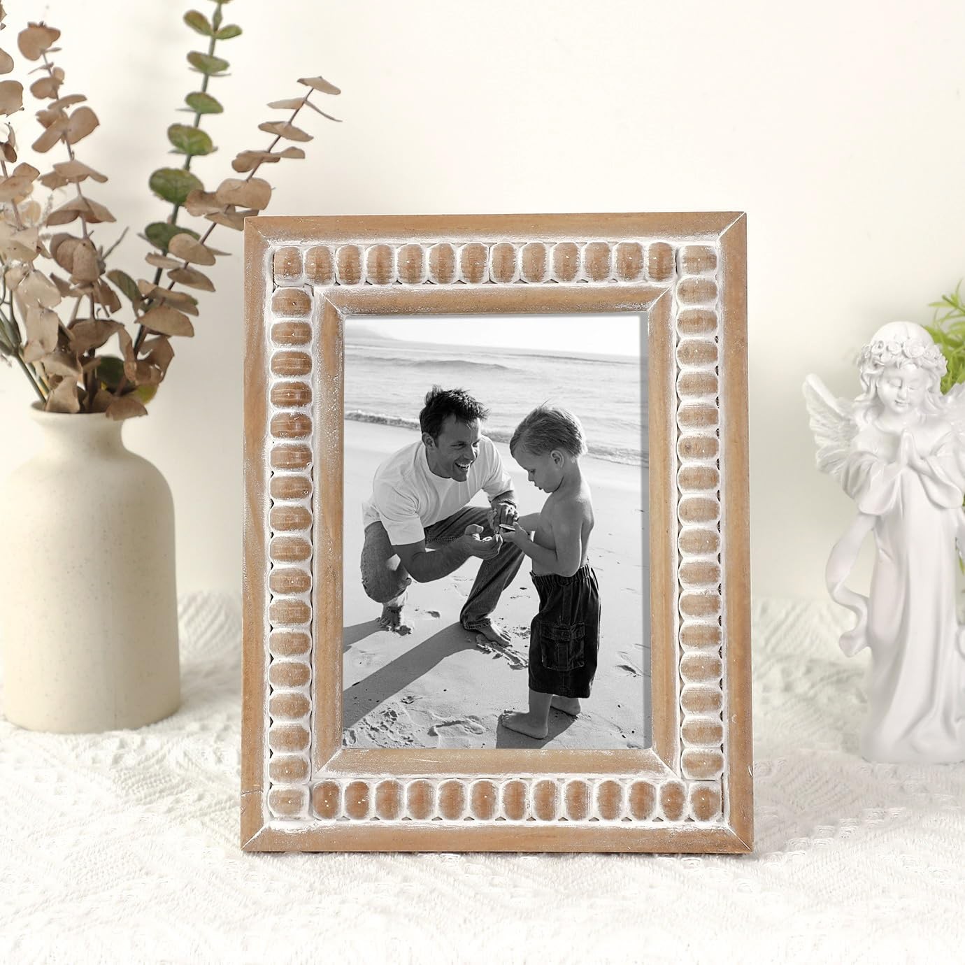 5x7 Picture Frame Rustic Distressed Wood Beaded Picture Frame for Single Phot...
