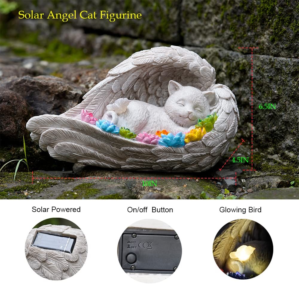 Cat Memorial Stone,Solar Angel Statue Figurine - Pet Stone