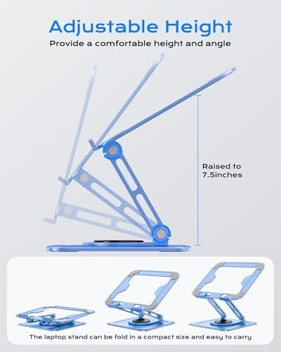 Adjustable Ergonomic Laptop Stand with 360 Rotating Base, Portable Riser for 10