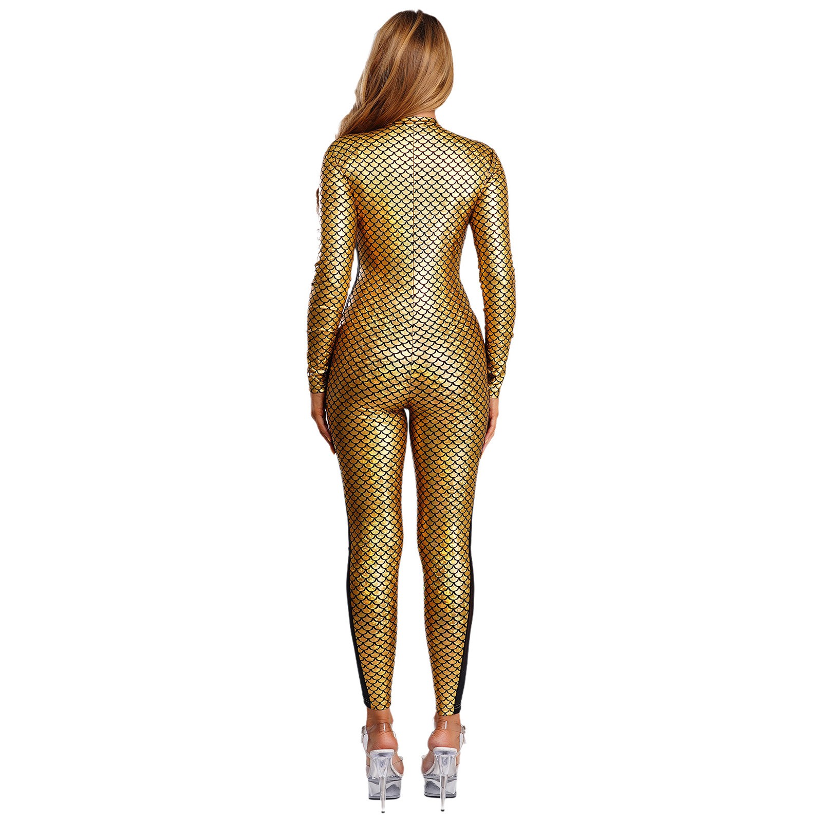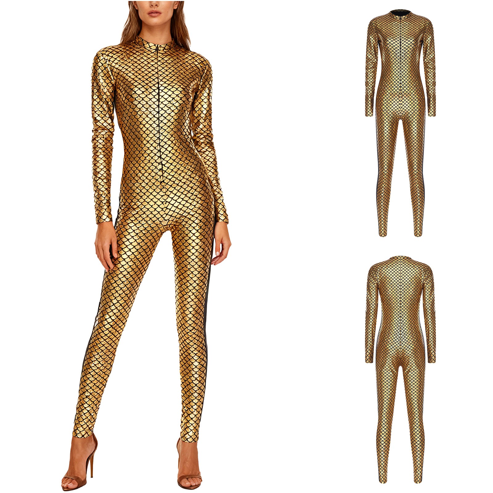 как выглядит Women Leotards Long Sleeve Jumpsuits Halloween Bodysuit Themed Rompers Metallic фото