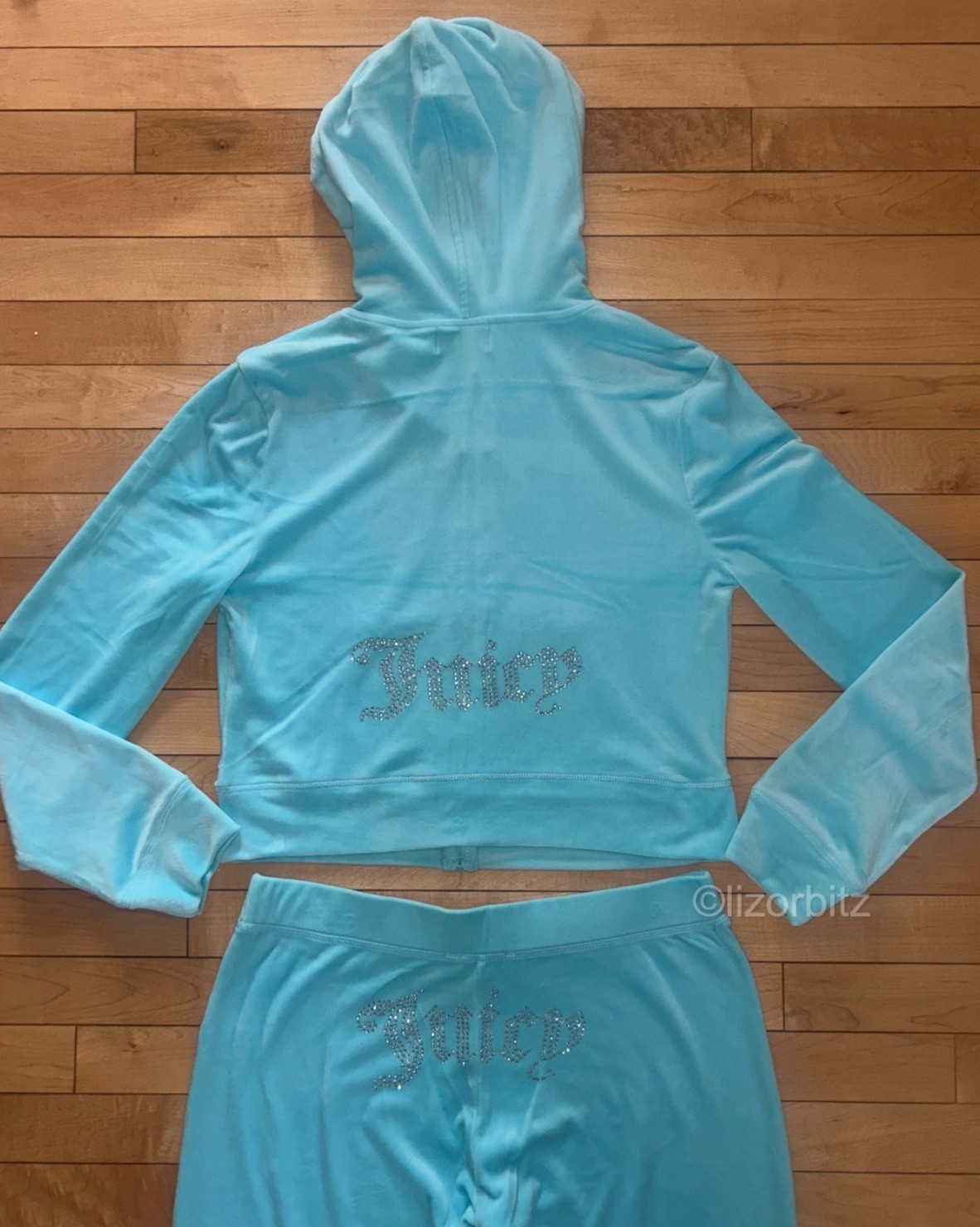 как выглядит NEW NWT JUICY COUTURE Velour OG Bling Tracksuit Set in Aqua Blue Crystal Size M фото
