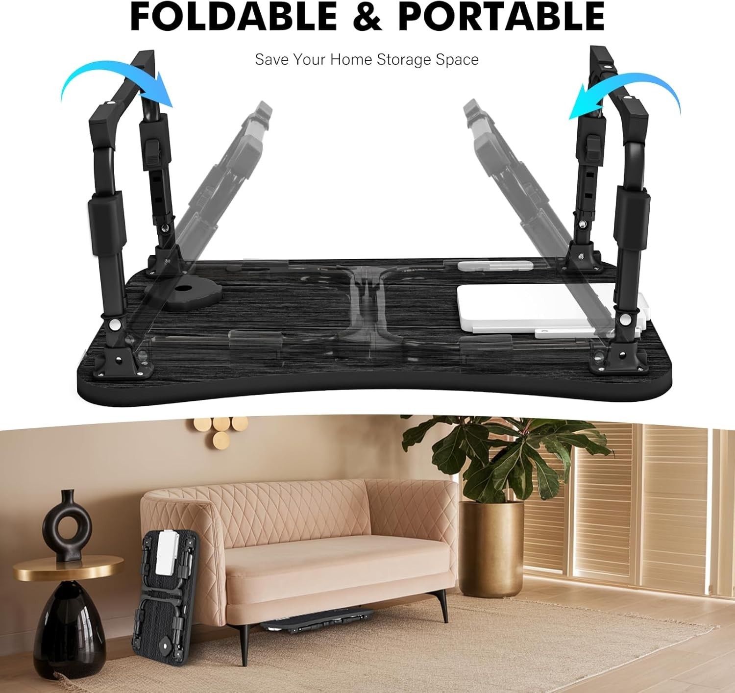 for Bed Adjustable Height, Foldable Bed Table with Storage Drawer, Tablet Slo...