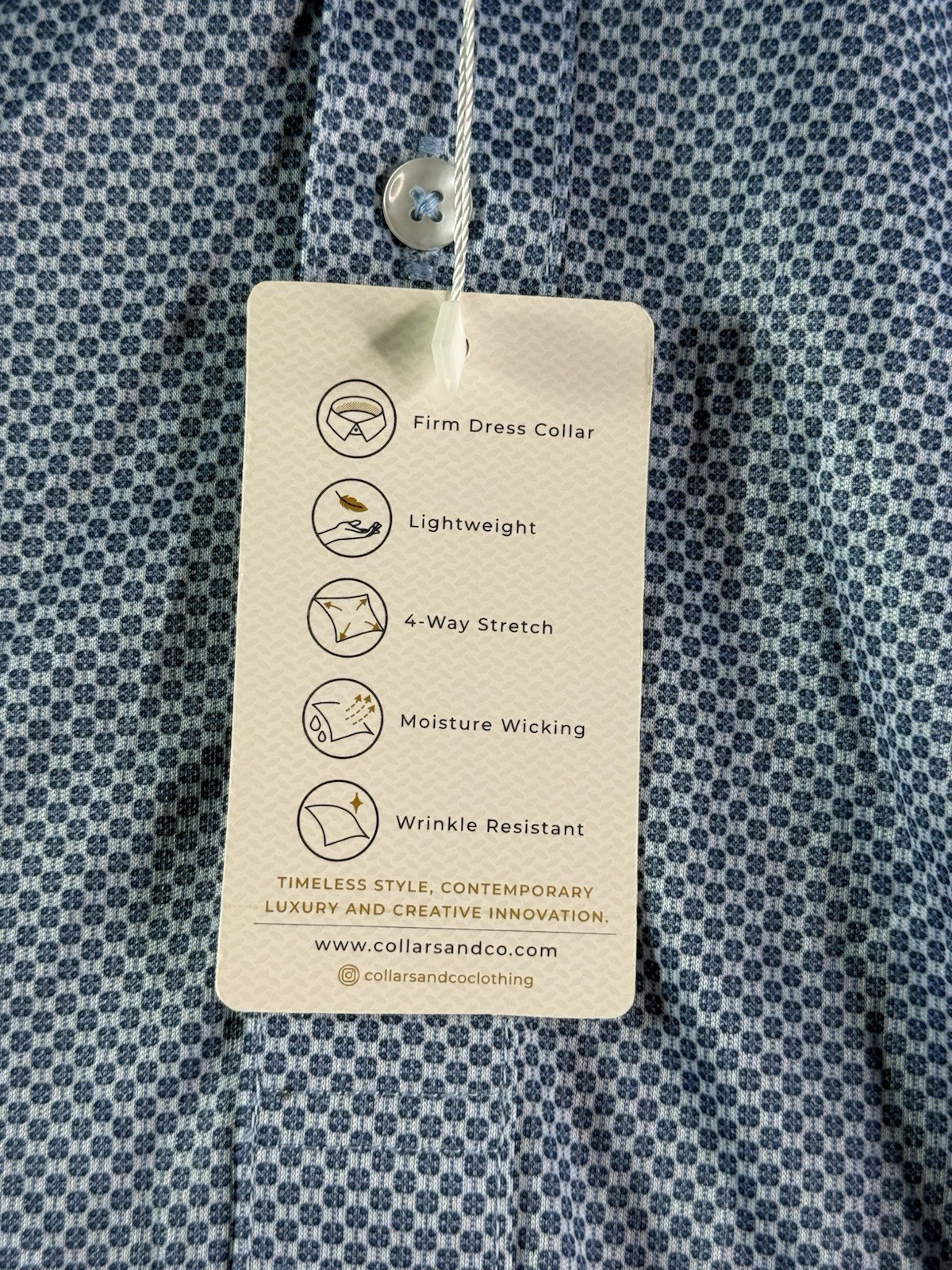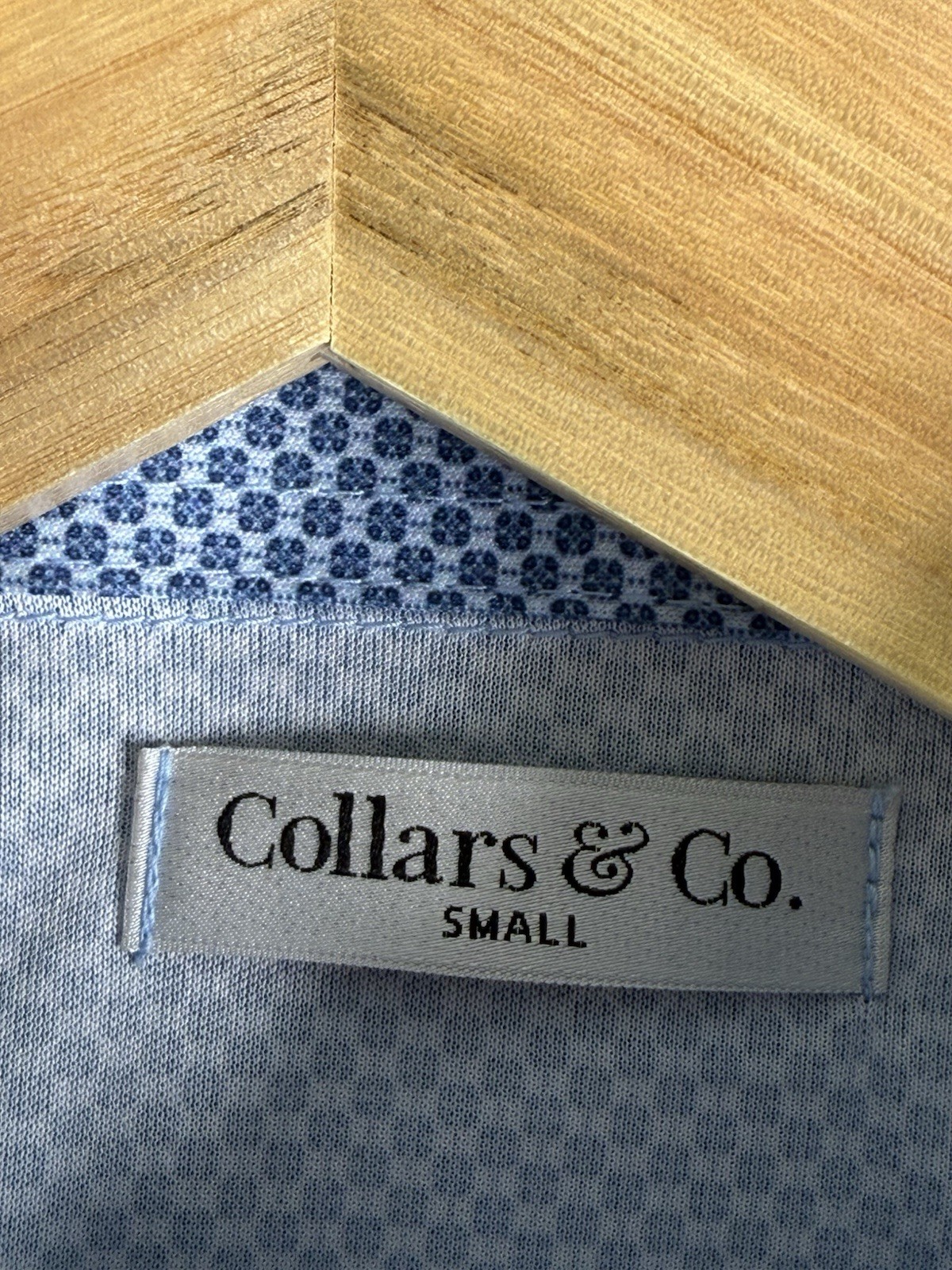 Collars Co Blue Geometric Button Down Dress Collar Polo Shirt Men s Small NEW