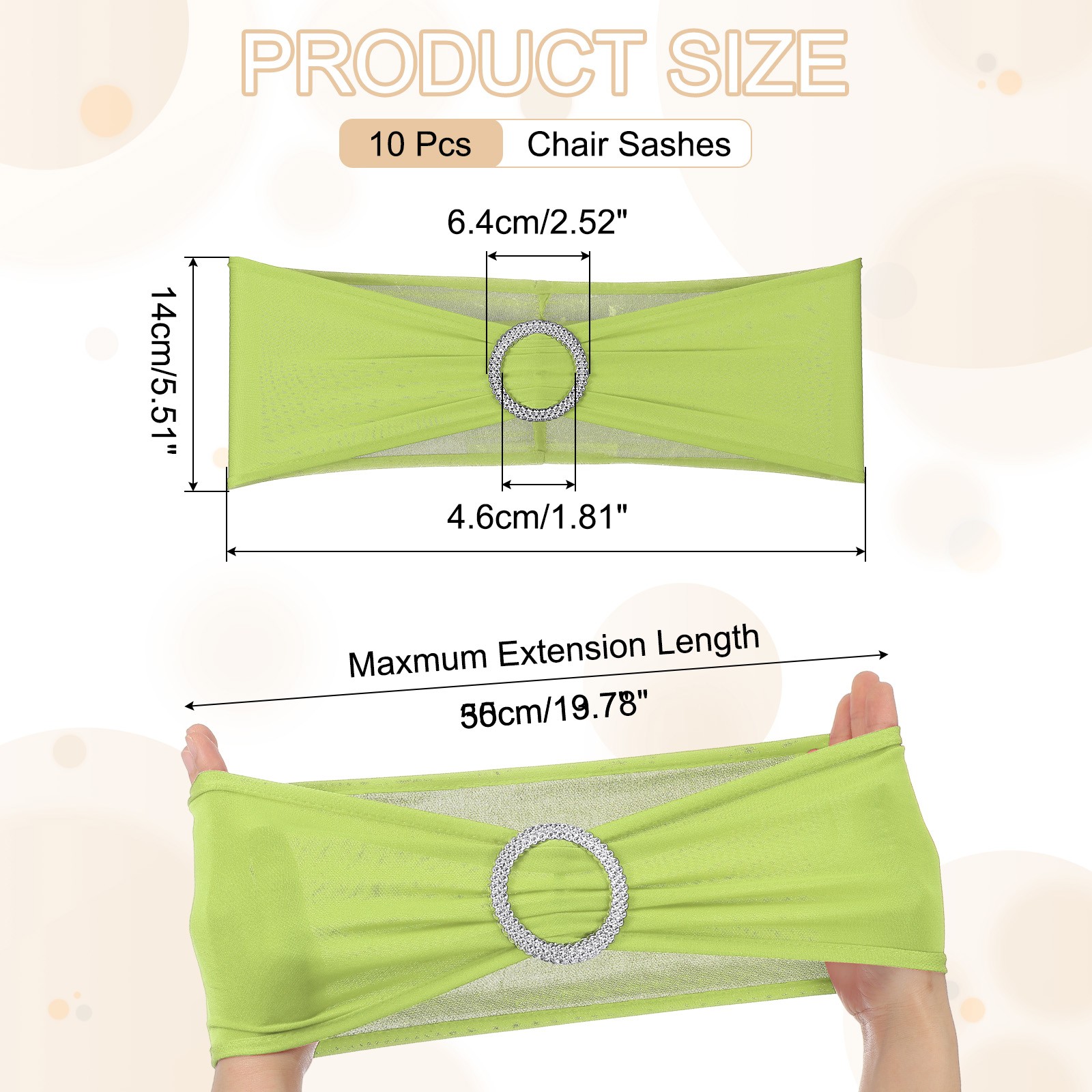 10 Pack Chair Sashes, Stretch Chair Cover Band Bows Cover Band, Light Green