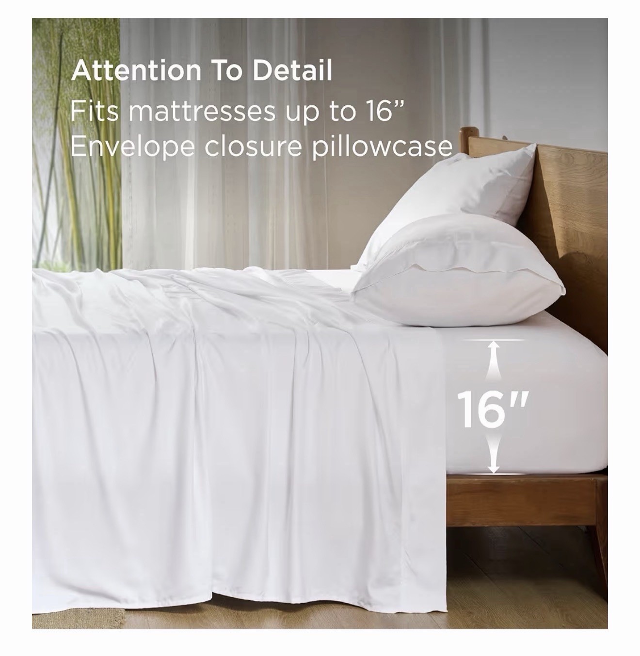 как выглядит Bedsure Queen Sheet Set, Cooling Sheets, Rayon Derived from Bamboo, 90x102 White фото