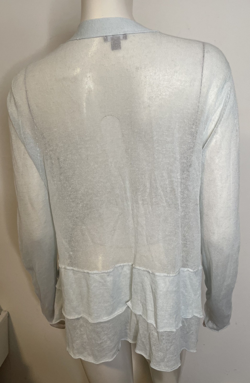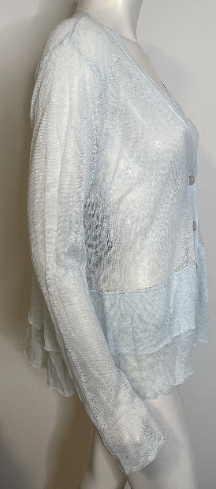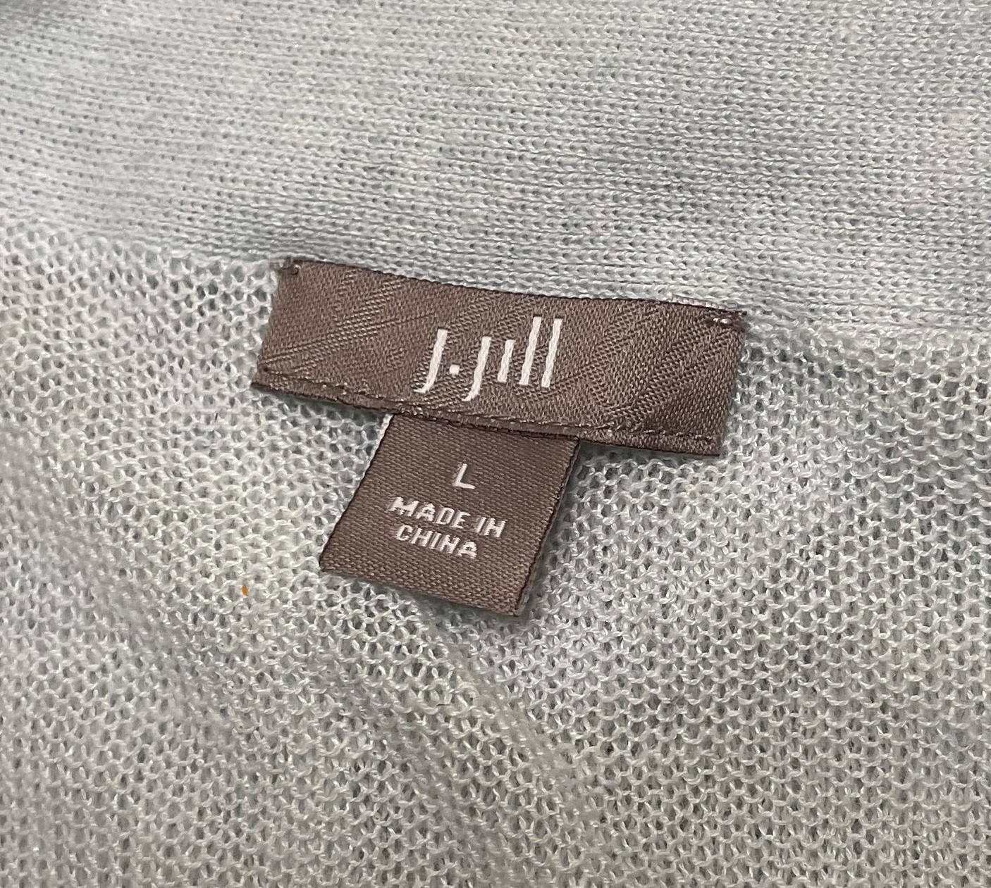 J. Jill Light Blue Linen Blend LS Cardigan Sweater L Sheer Button Front V Neck