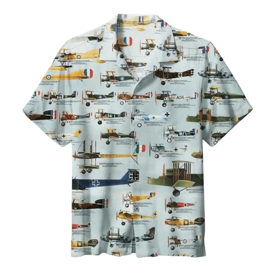 Vintage Biplane Hawaiian Shirt, Aviation History Aloha Button Up