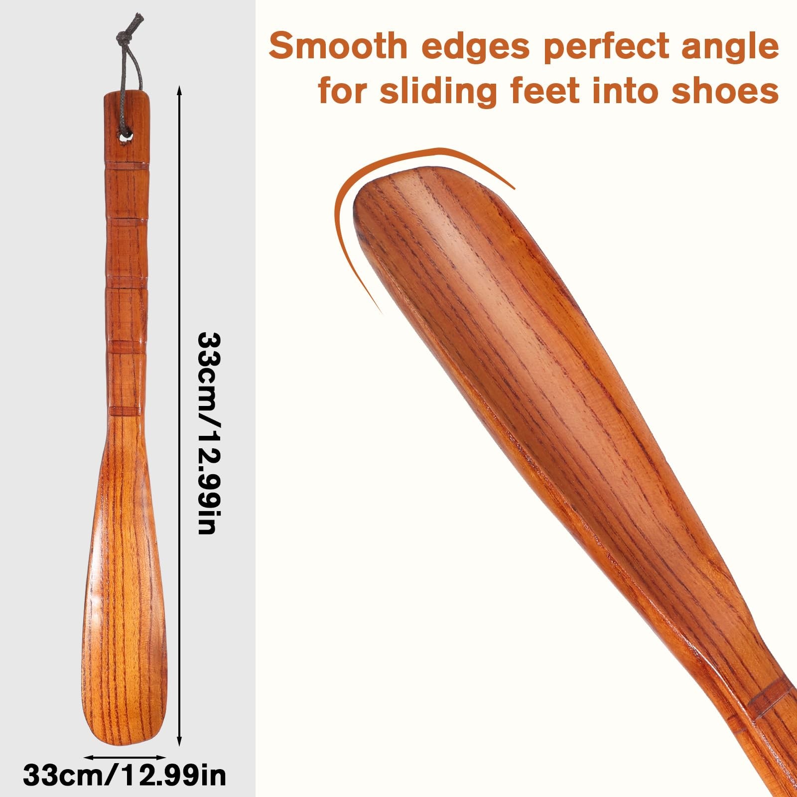 13 Inch Long Handle Wooden Shoe Horn Easy Wear Helper Shoehorns for Seniors