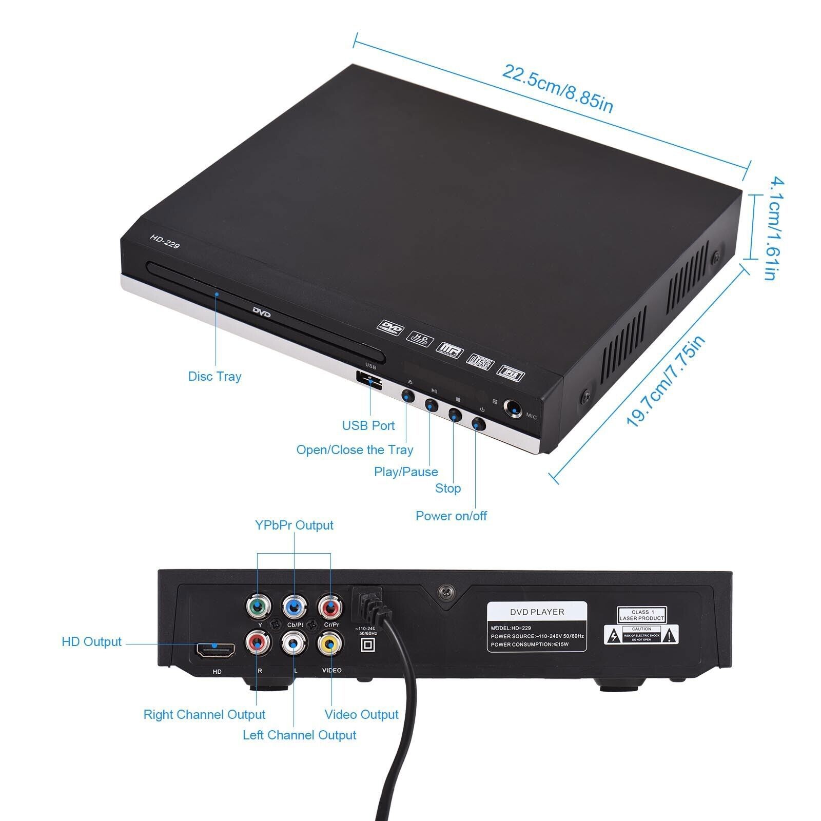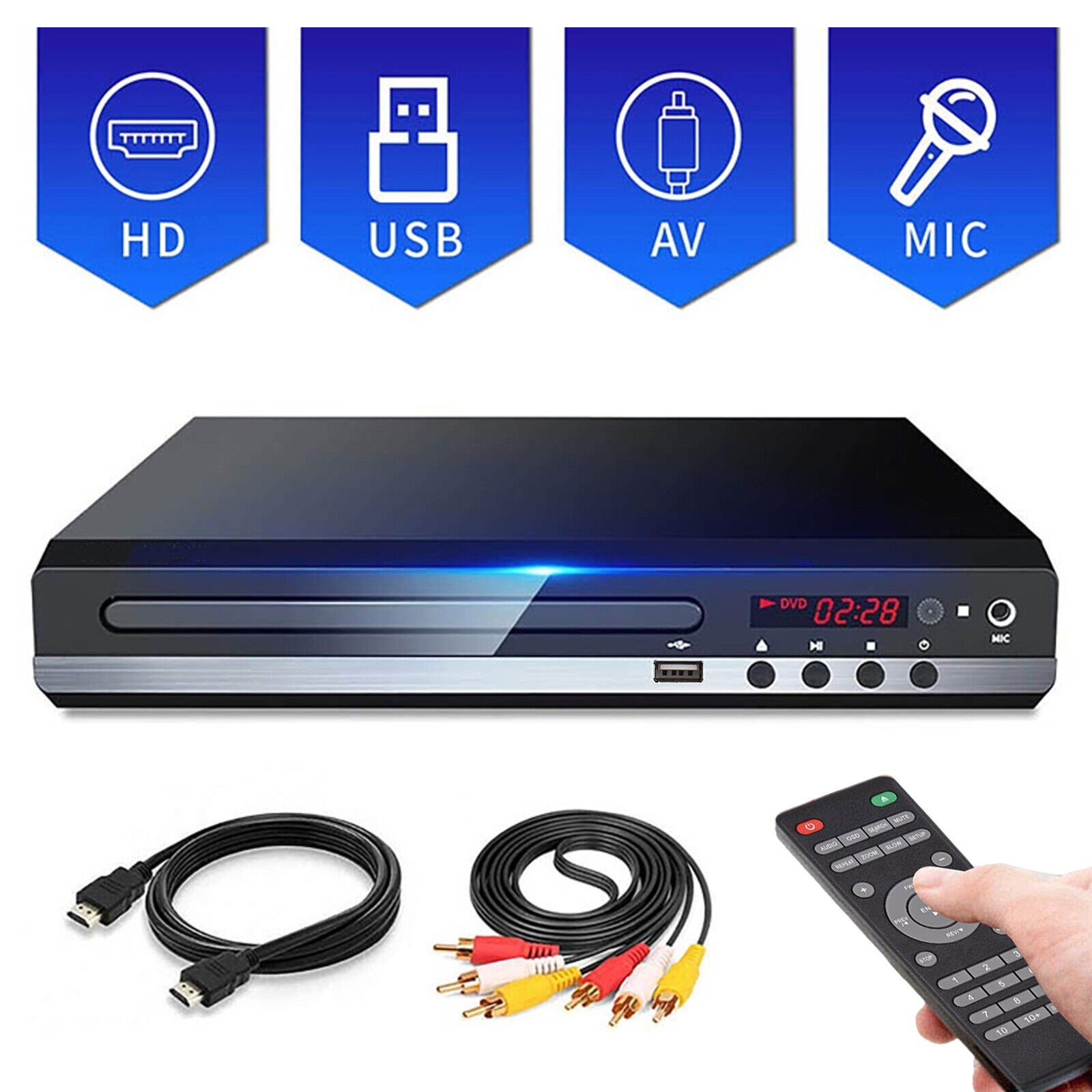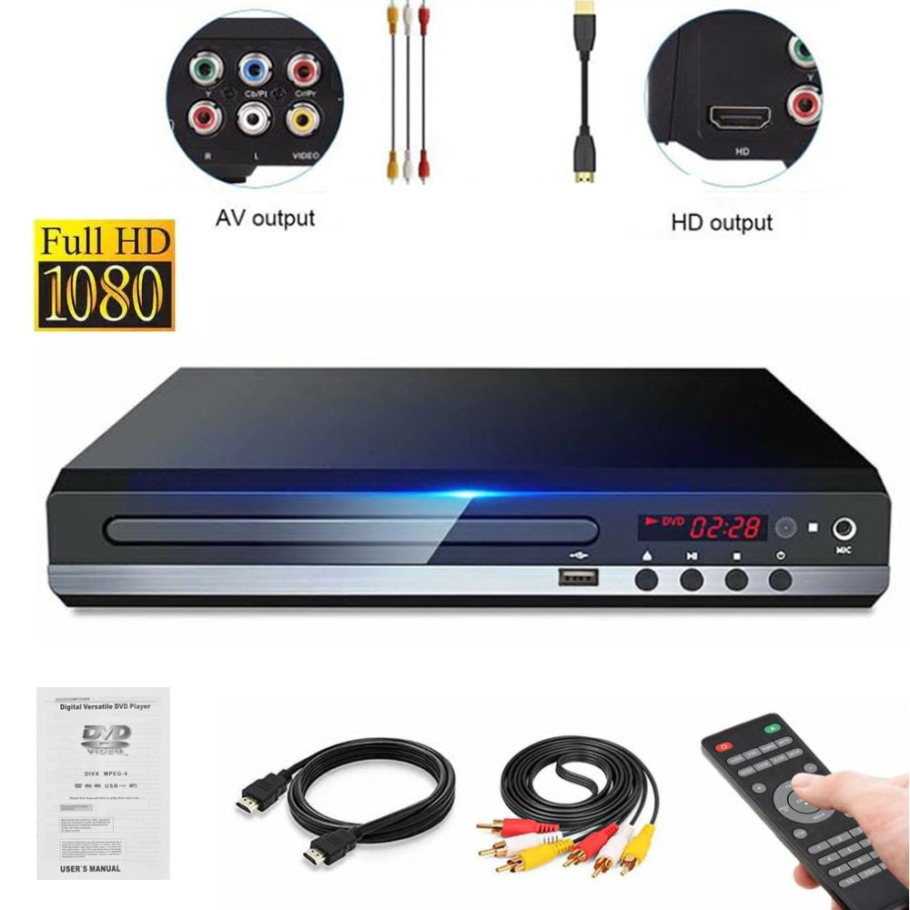 1080P DVD Player All Region Free DVD CD Disc Player AV Output USB Remote Control