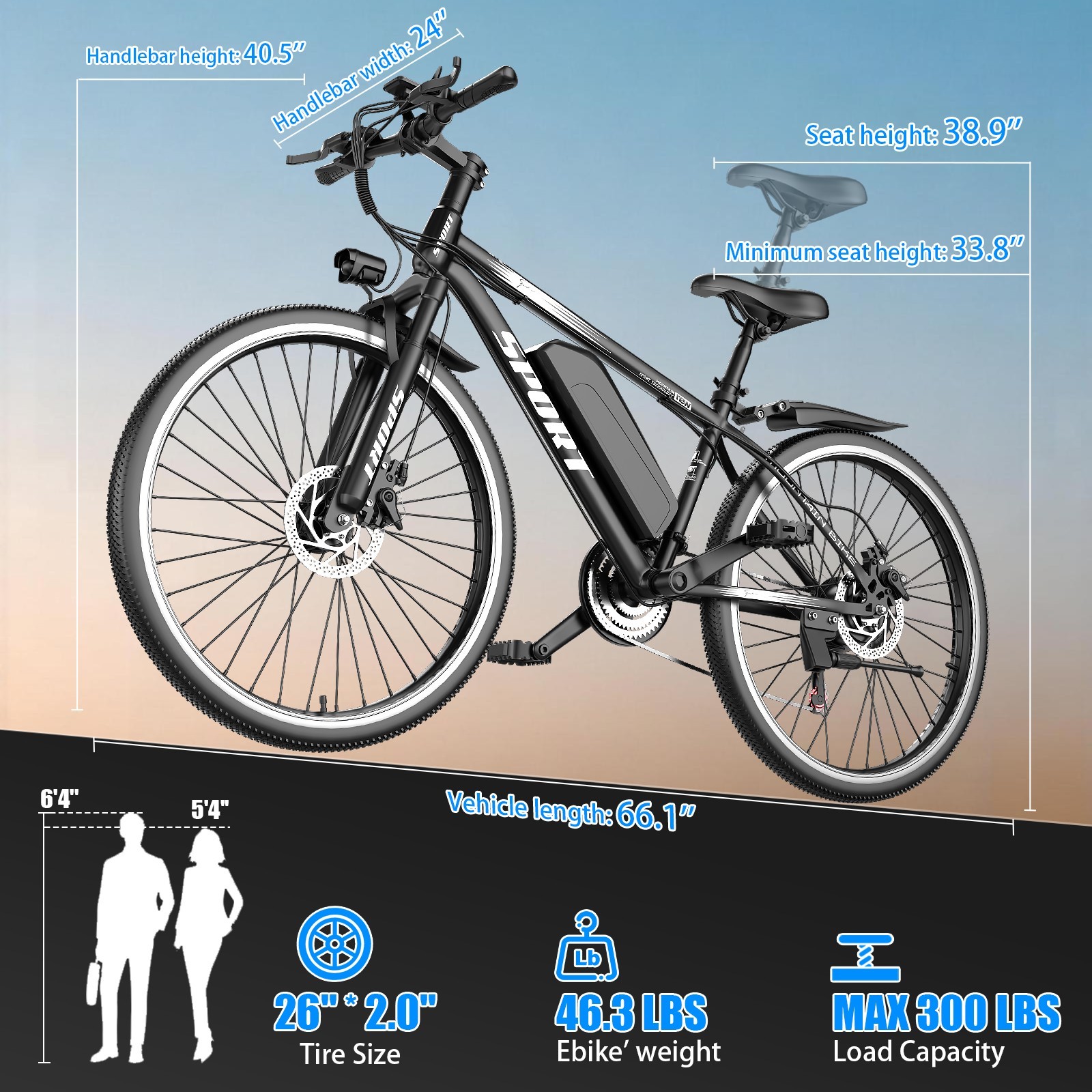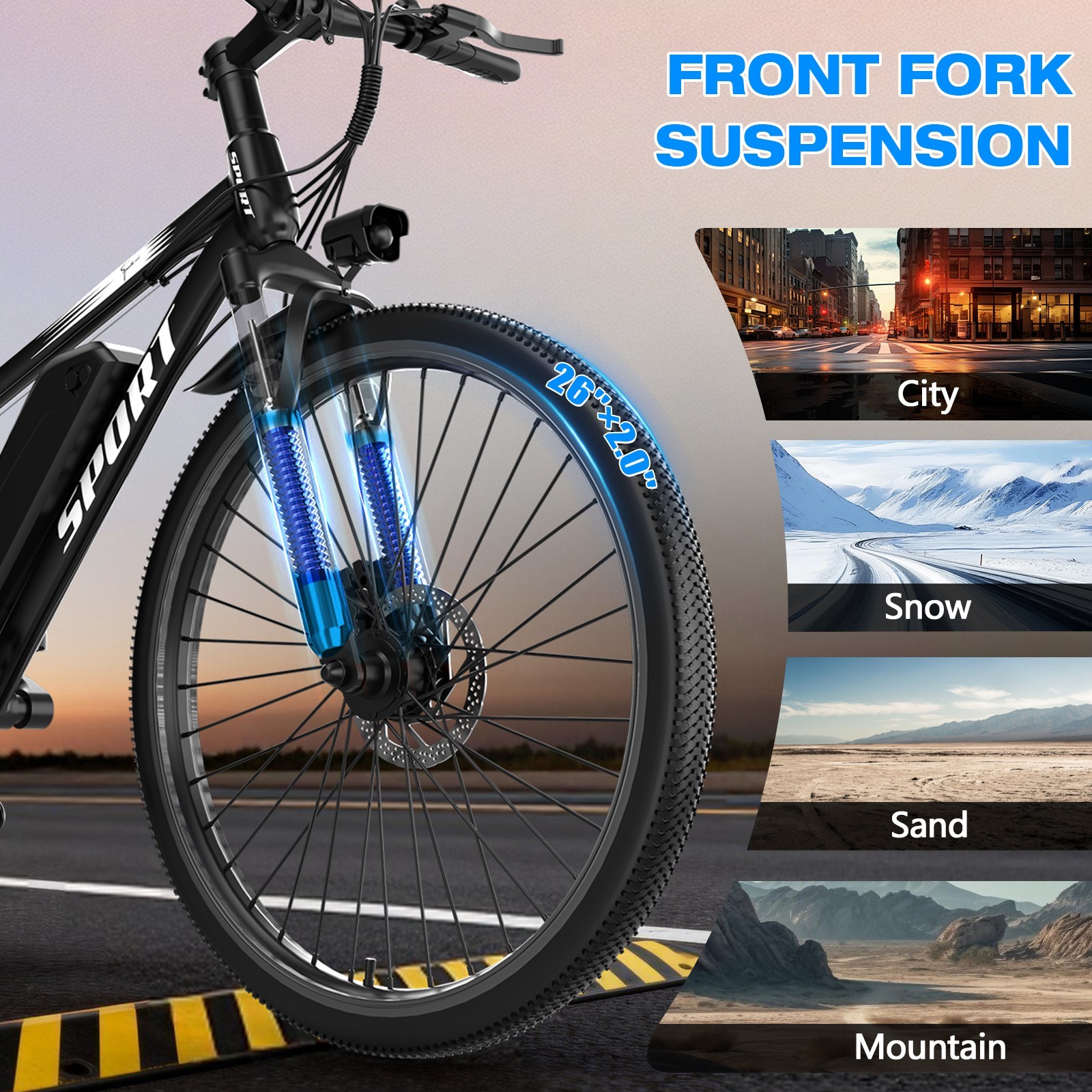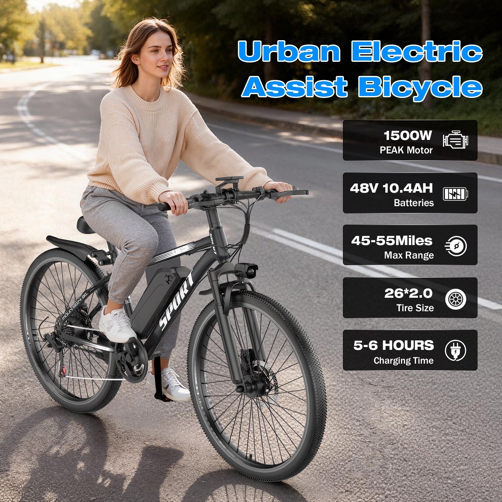 Electric Bike for Adults 26'' 1500W Peak Ebike 65 Miles 25MPH E Mountain Bike US