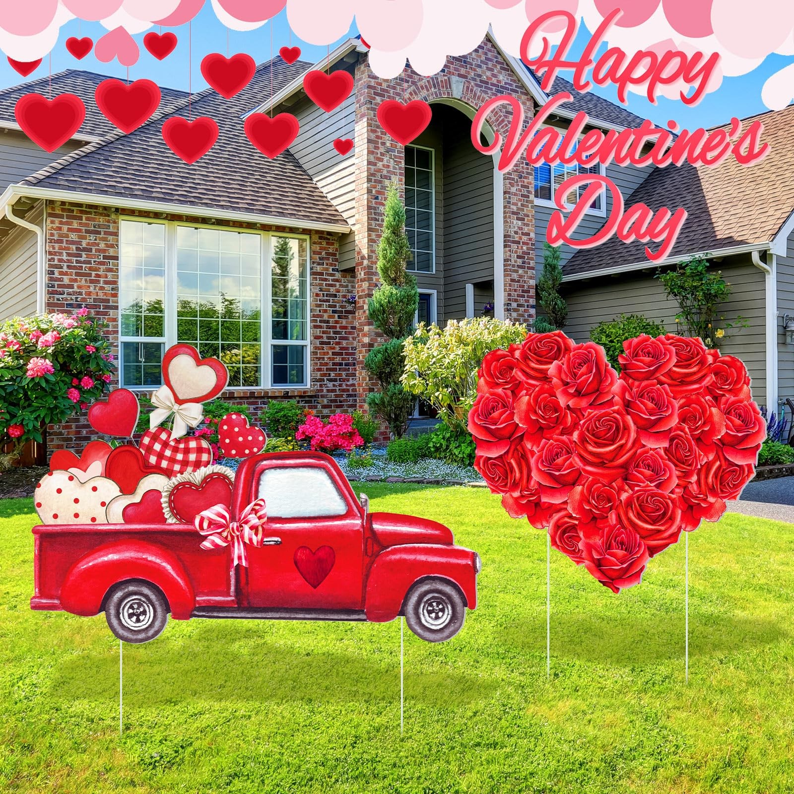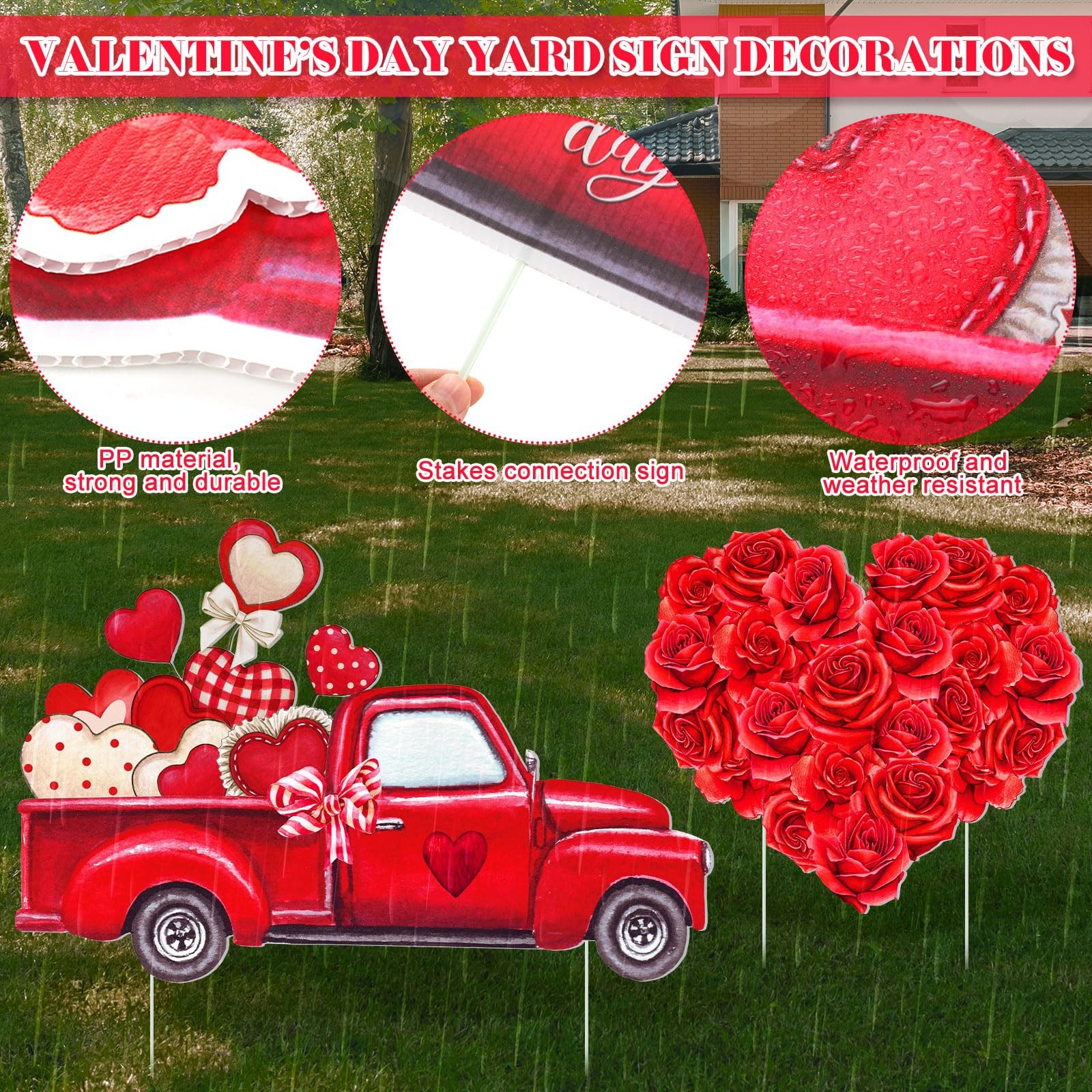 2 Set Valentine's Day Outdoor Decorations Valentines Day Yard Sign with Stake...